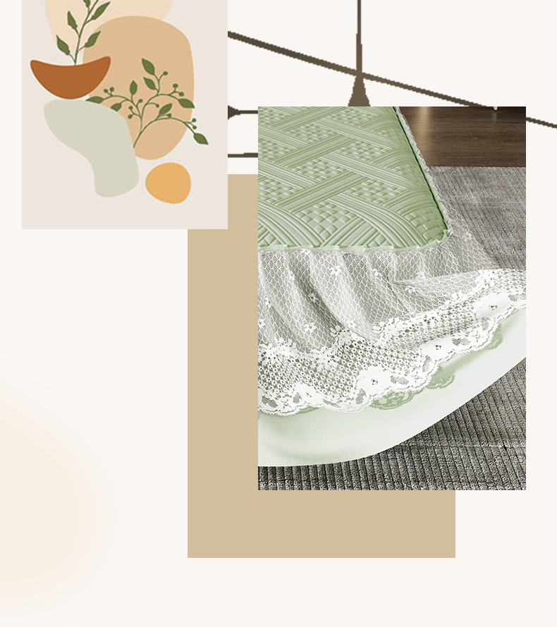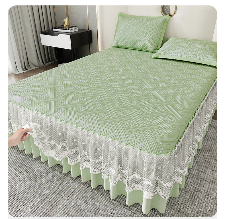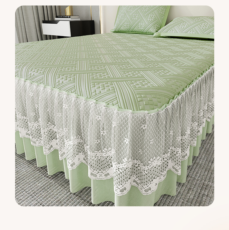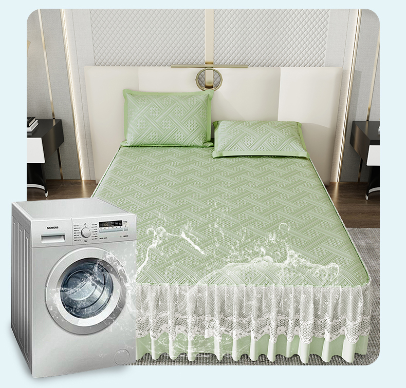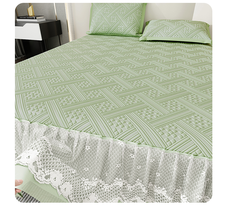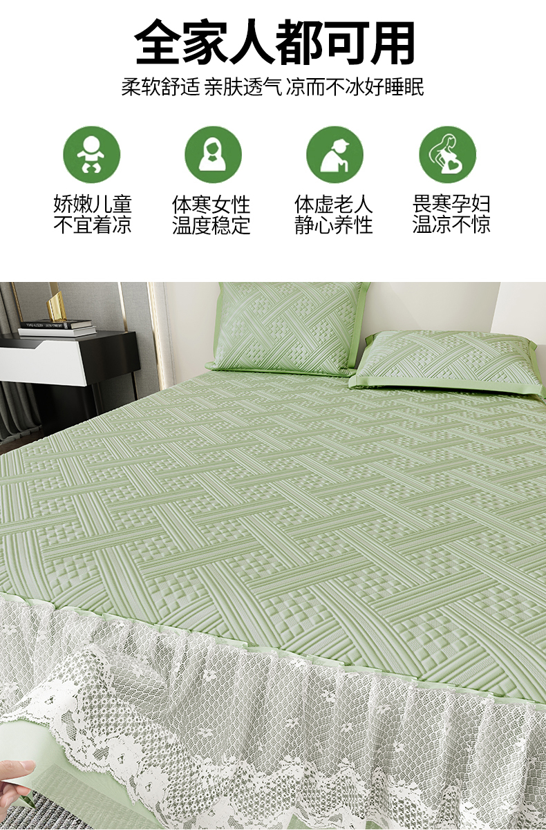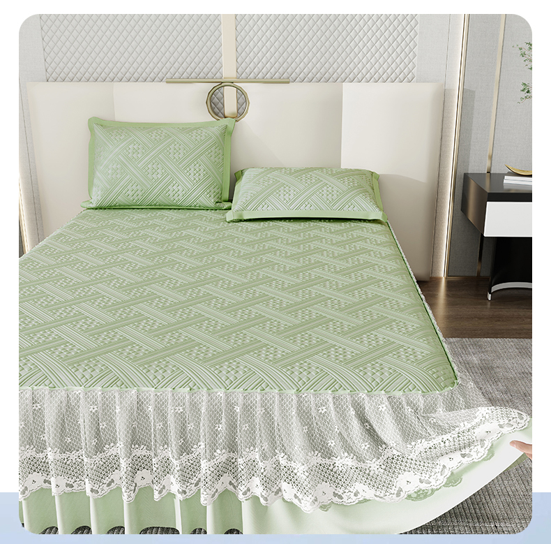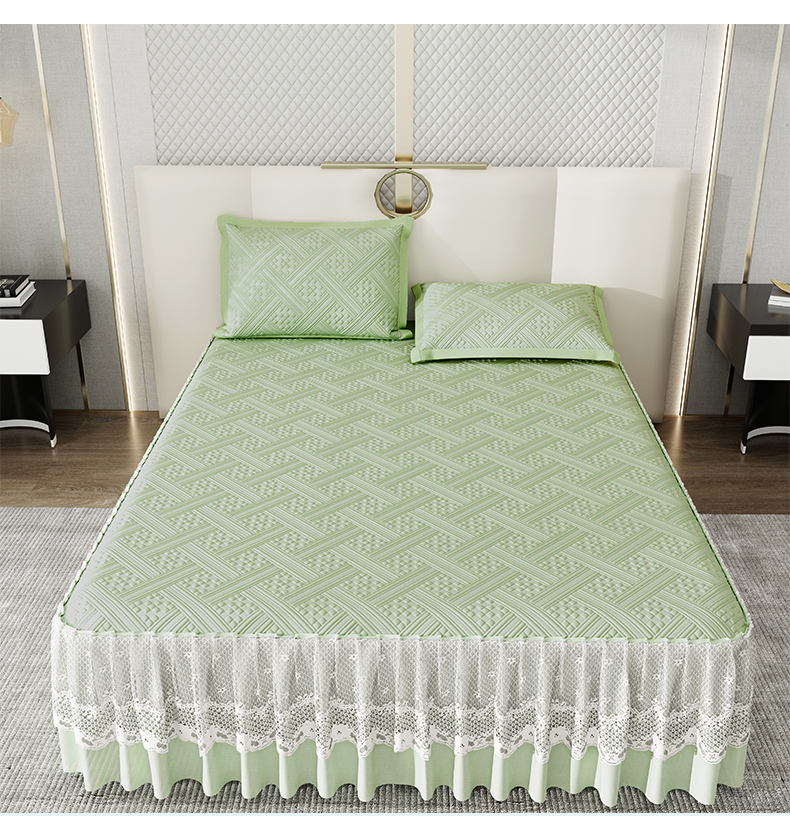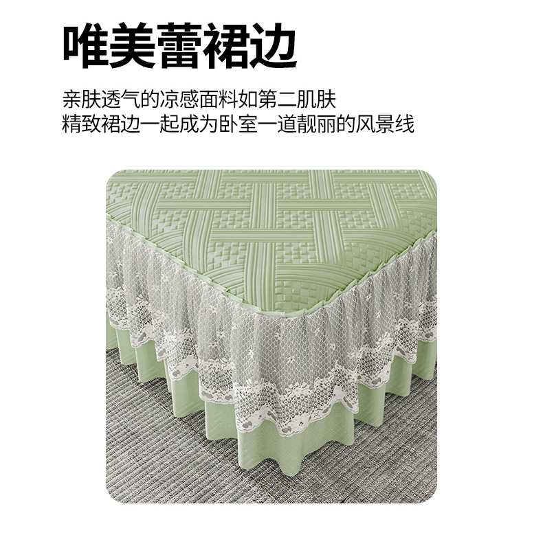 宜派家纺 2026新款PE凉感丝床裙款凉席三件套 织序床裙-绿
