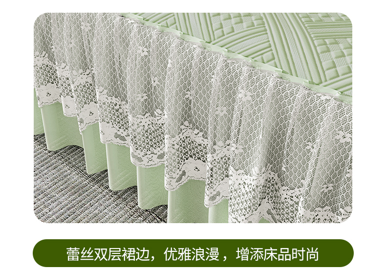 商品名称:宜派家纺 2026新款PE凉感丝床裙款凉席三件套 织序床裙-绿