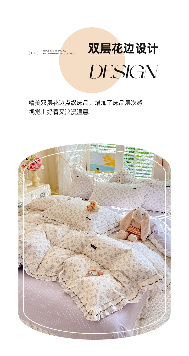 (总)艾唯希2025新款全棉小香风工艺四件套纯棉小花边碎花被套韩式公主风,初朵,春漾,漫丁蔷薇,觅秋,密玲花语,慕归十里,小青藤-米,雅集,樱花