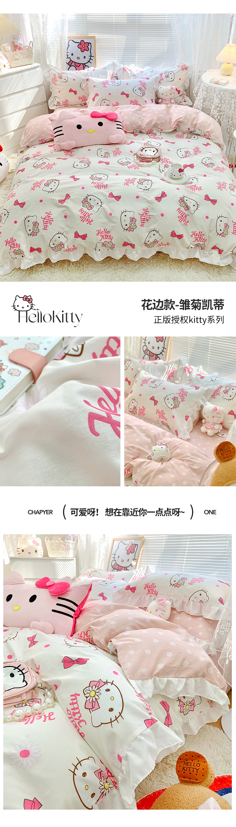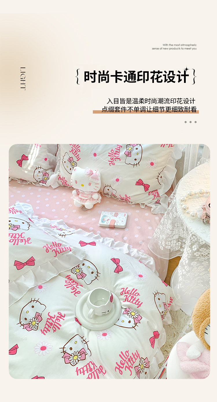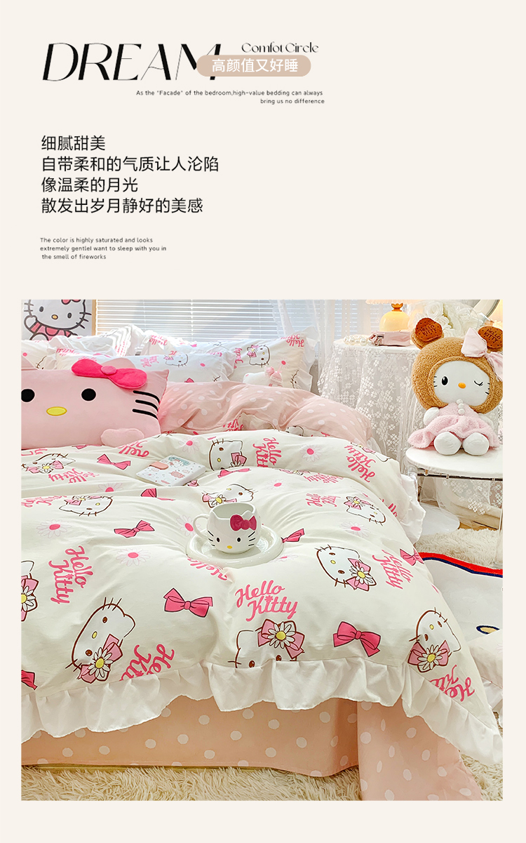 当前位置: 91家纺网 > 商品网购 > 床品套件 > 四件套 > 全棉普通四件套 > (总)朵希曼 2026新款全棉纯棉三丽鸥花边款四件套