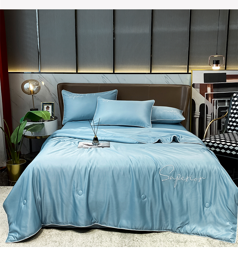 • 91家纺网 家纺一手货源 找家纺 绒城 2026新款字母刺绣水洗天丝夏被夏凉被空调被四件套-字母 字母石兰