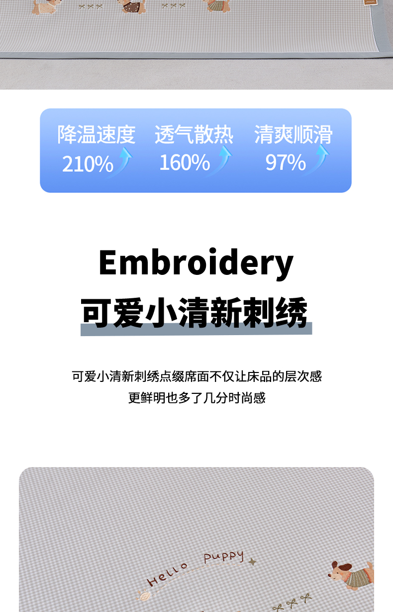商品名称:小牛席业 2026新款腊肠狗绣花凉感冰丝席凉席席子 腊肠狗-灰色