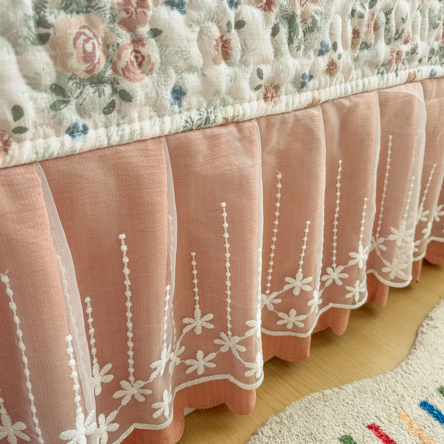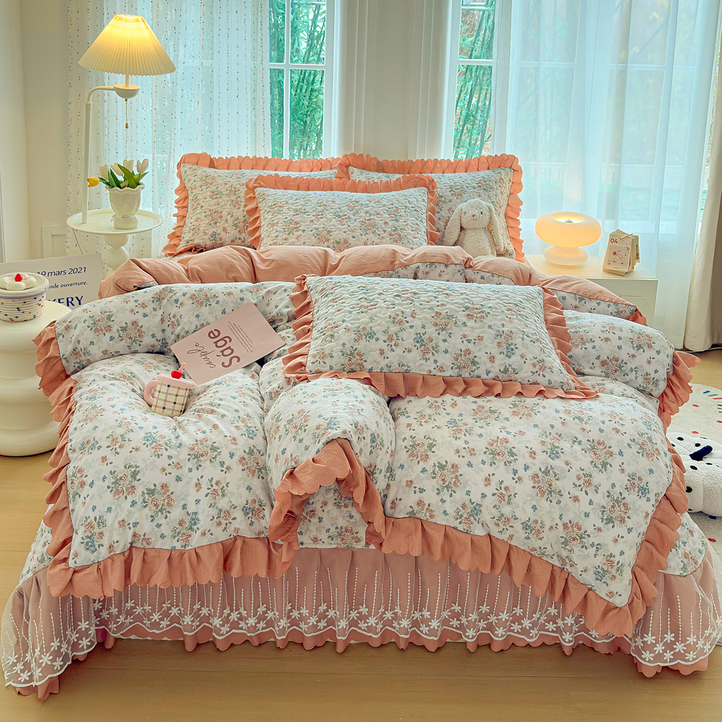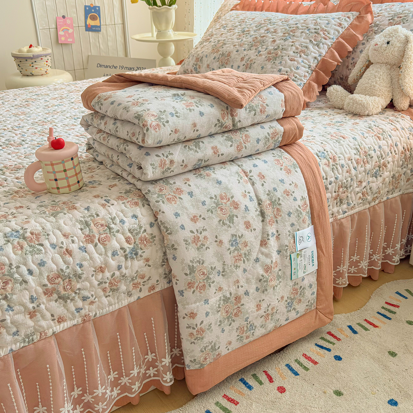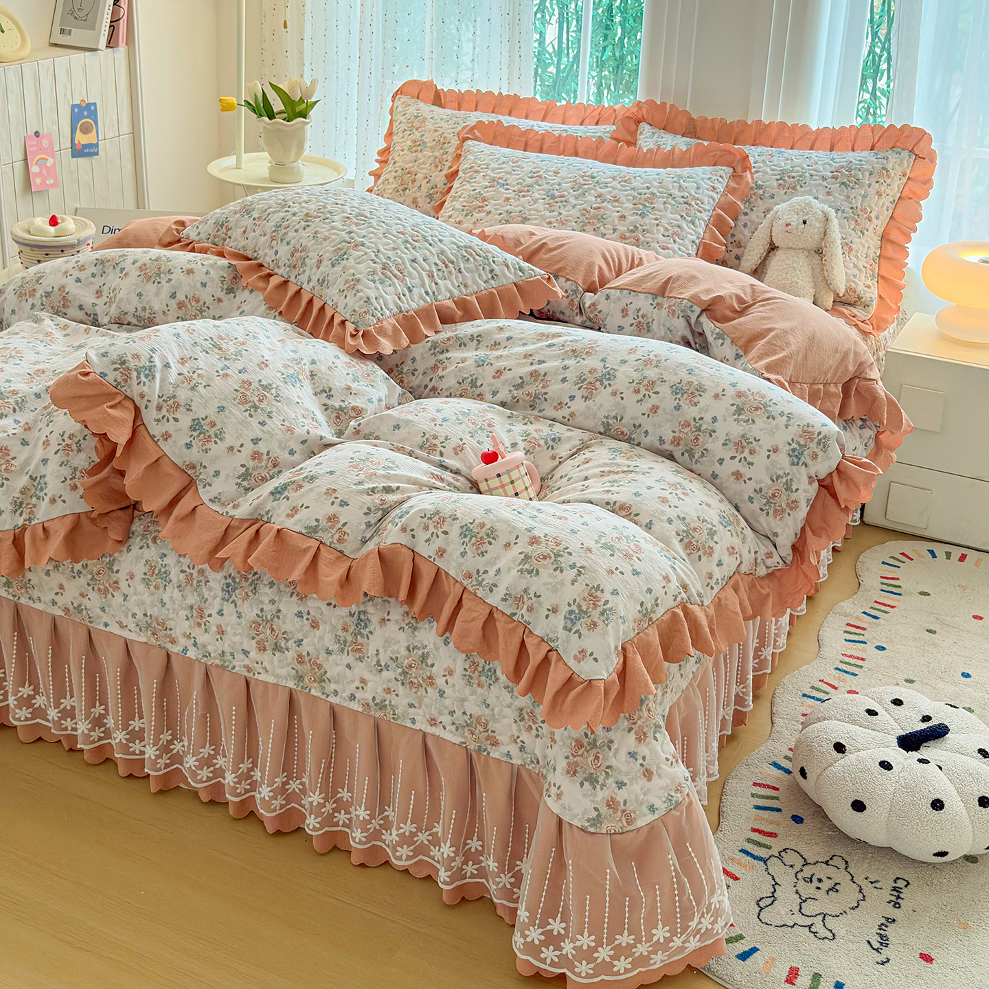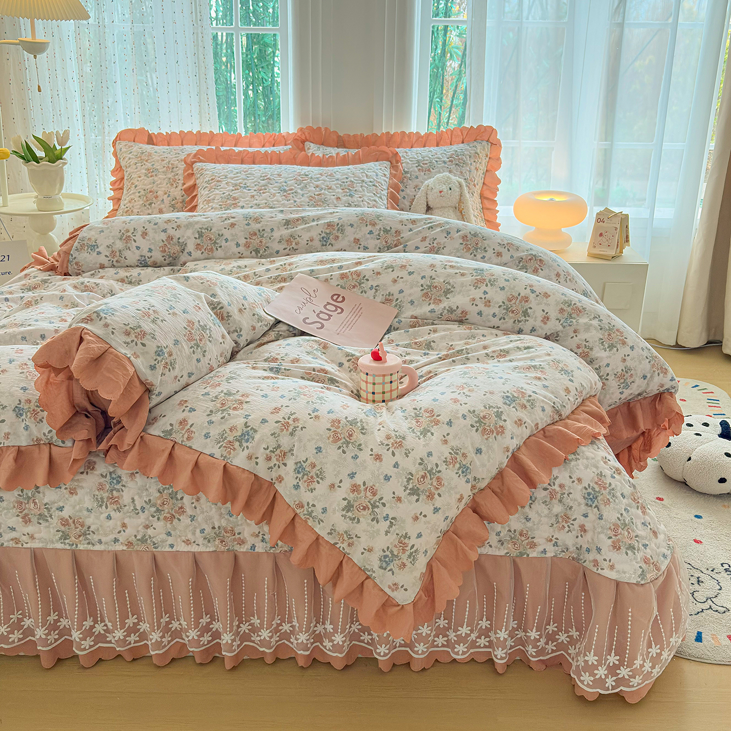 当前位置: 91家纺网 > 商品网购 > 床品套件 > 四件套 > 其它四件套 > 绒耀家纺 2026春夏直播爆款泡芙棉云感双层纱皱皱纱韩式花边床盖四件套 蔷薇