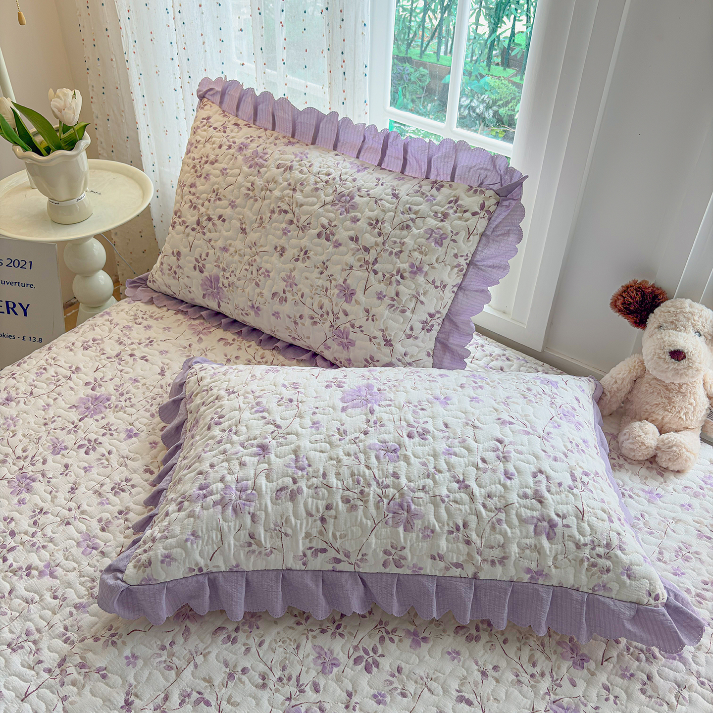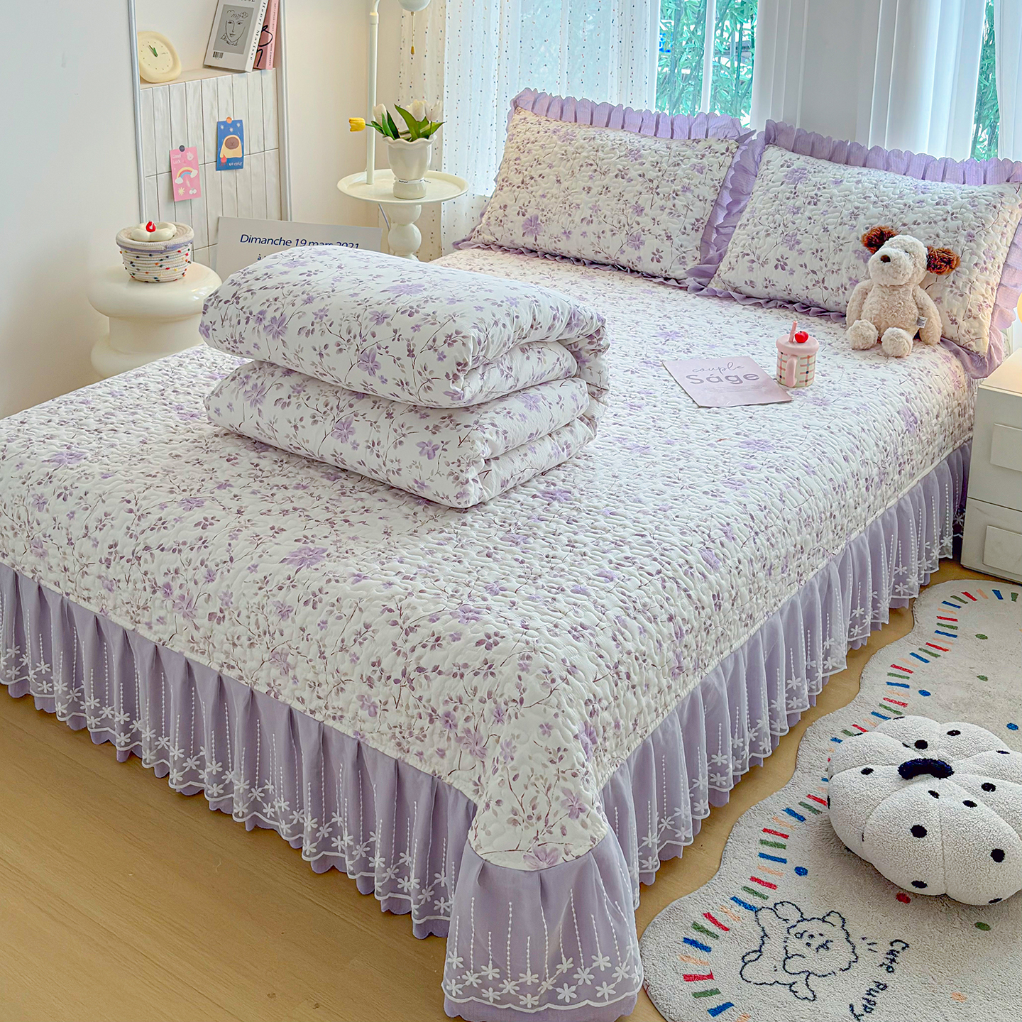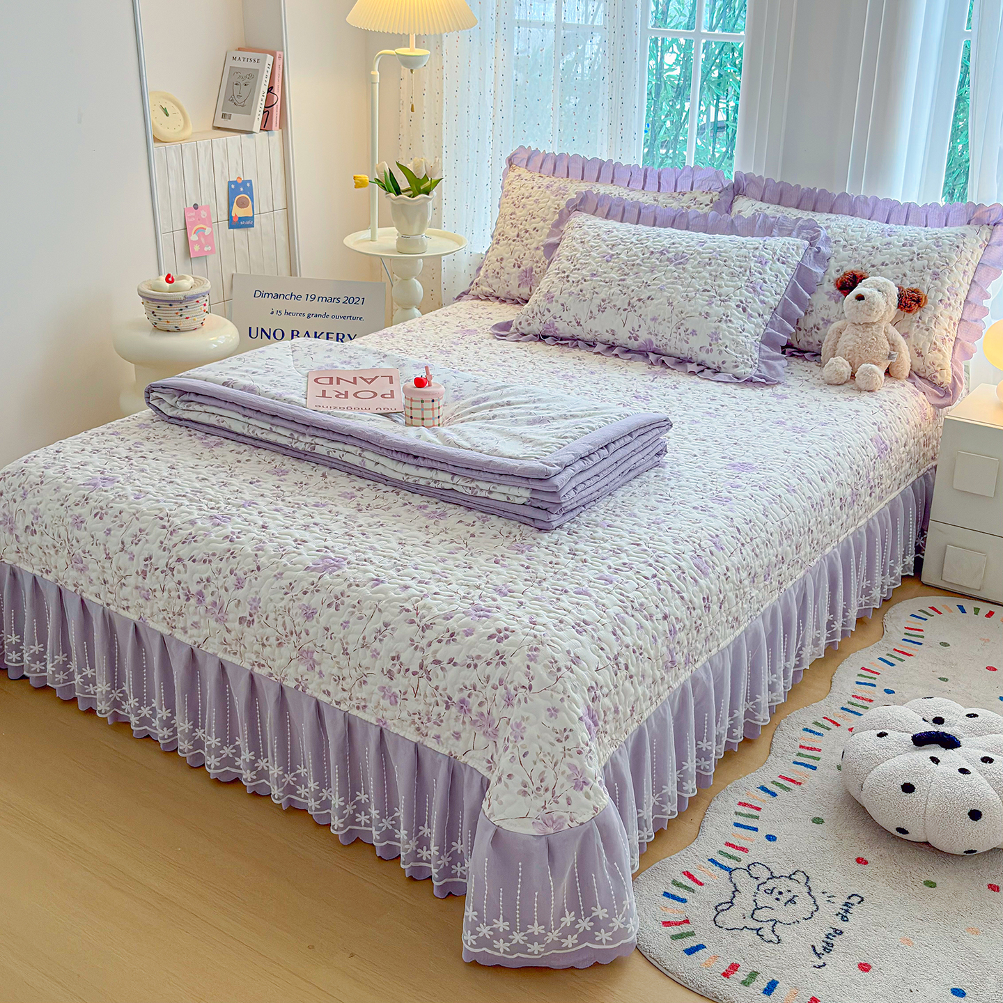 当前位置: 91家纺网 > 商品网购 > 床品套件 > 四件套 > 其它四件套 > 绒耀家纺 2026春夏直播爆款泡芙棉云感双层纱皱皱纱韩式花边床盖四件套 紫薇