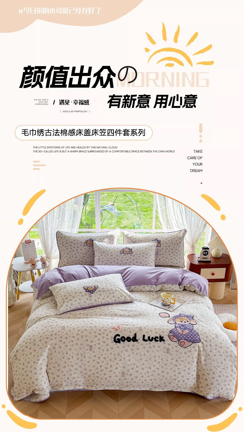 (总)恋佳居 2025新款卡通毛巾绣牛奶绒绣花四件套,花匠布布,可爱狗,萌趣,蘑菇与狗-粉,蘑菇与狗-紫,太空小恐龙,甜品时光,音乐派对,月亮天使