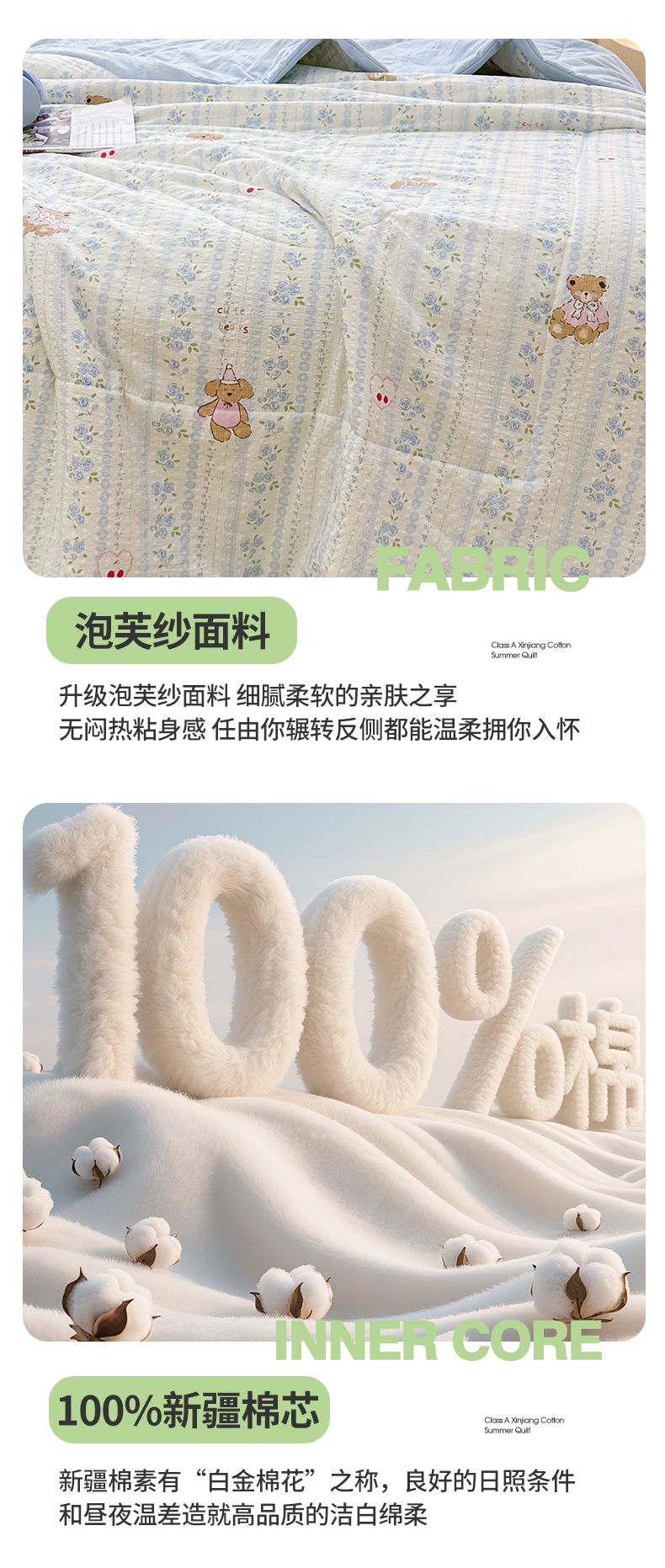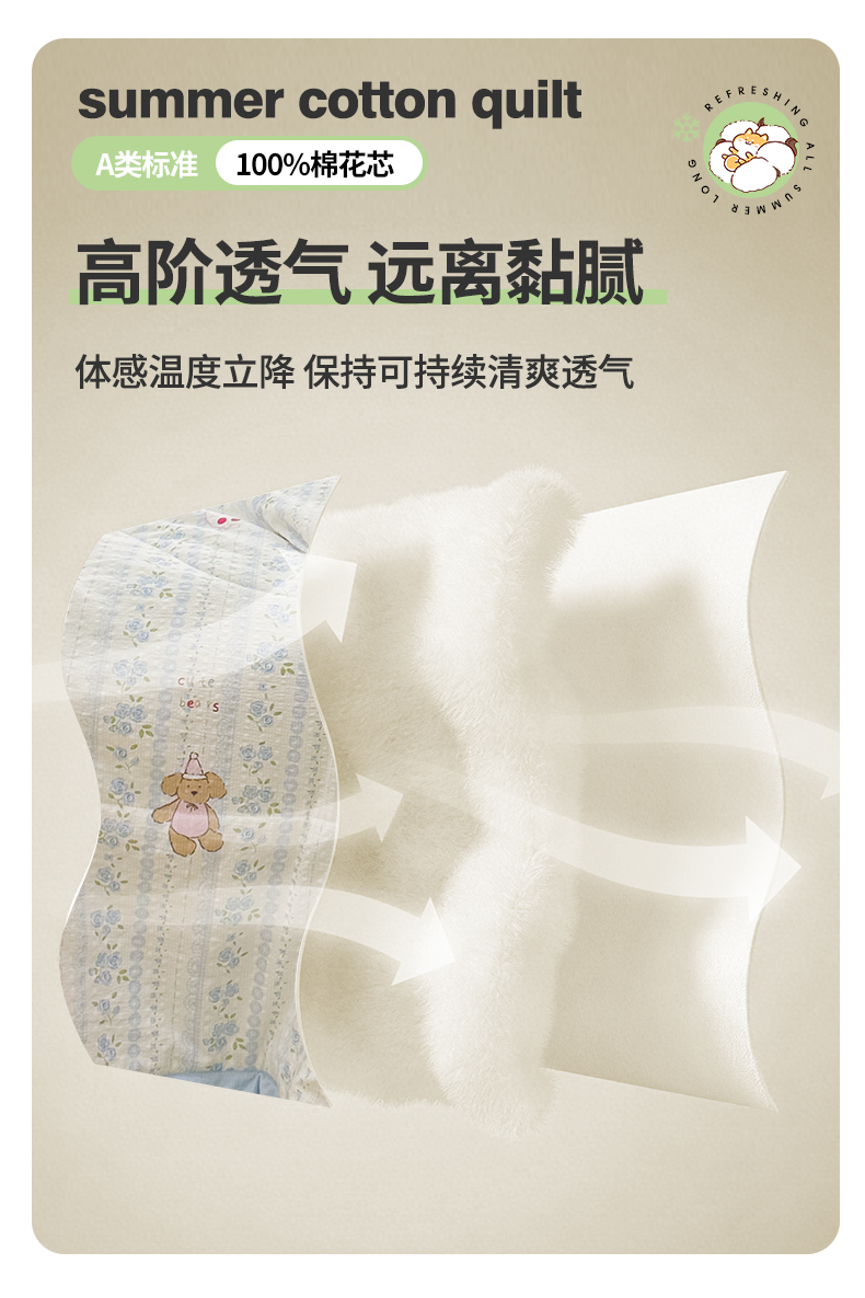 魅图家纺 2026新款泡芙纱新疆棉花夏被 纯宅熊