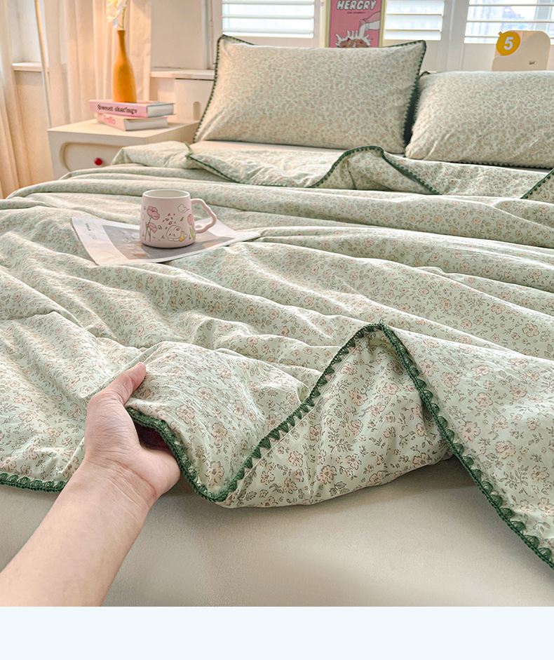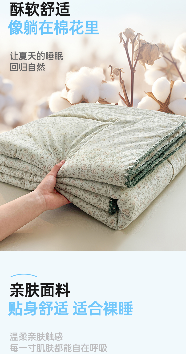 商品名称:锦尚坊被芯馆 2026新款100%棉花双层纱夏被新疆棉花空调被可机洗夏凉被绣边踩棉工艺 绿野花开