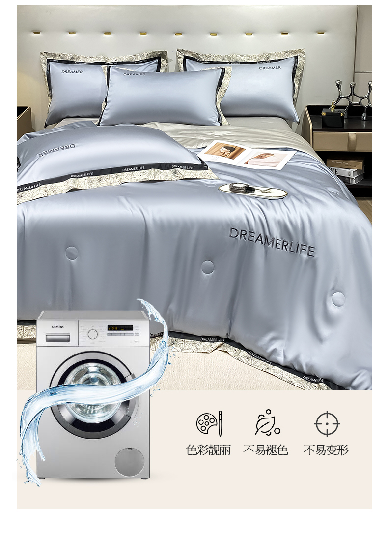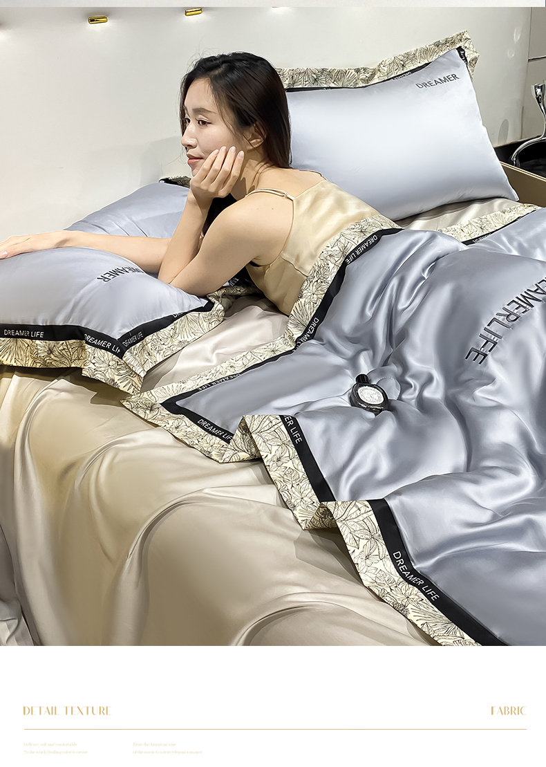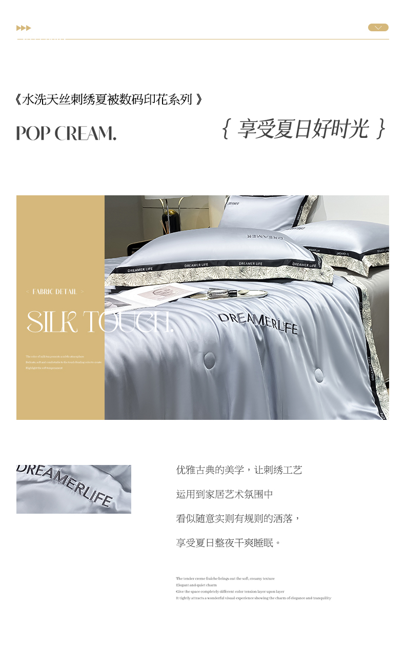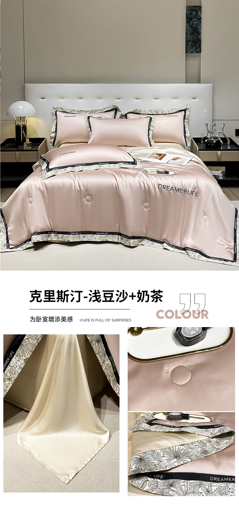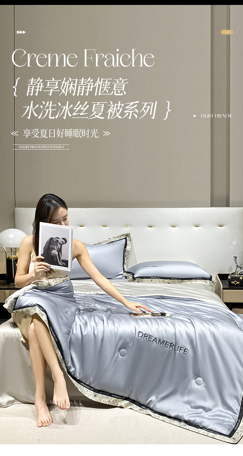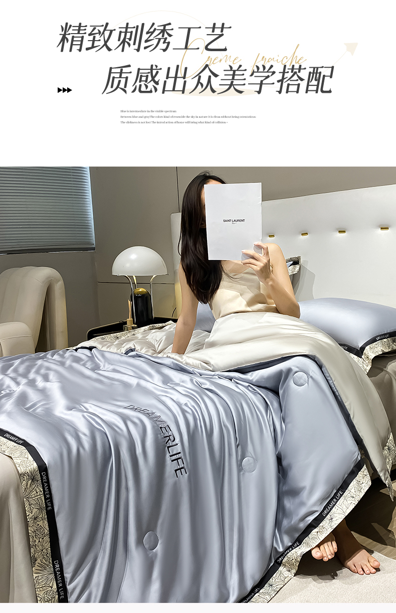 • 91家纺网 家纺一手货源 找家纺 眷恋家纺 2026新款水洗真丝冰丝宽边刺绣夏被三件套四件套-克里斯汀系列 克里斯汀-海清+山灰