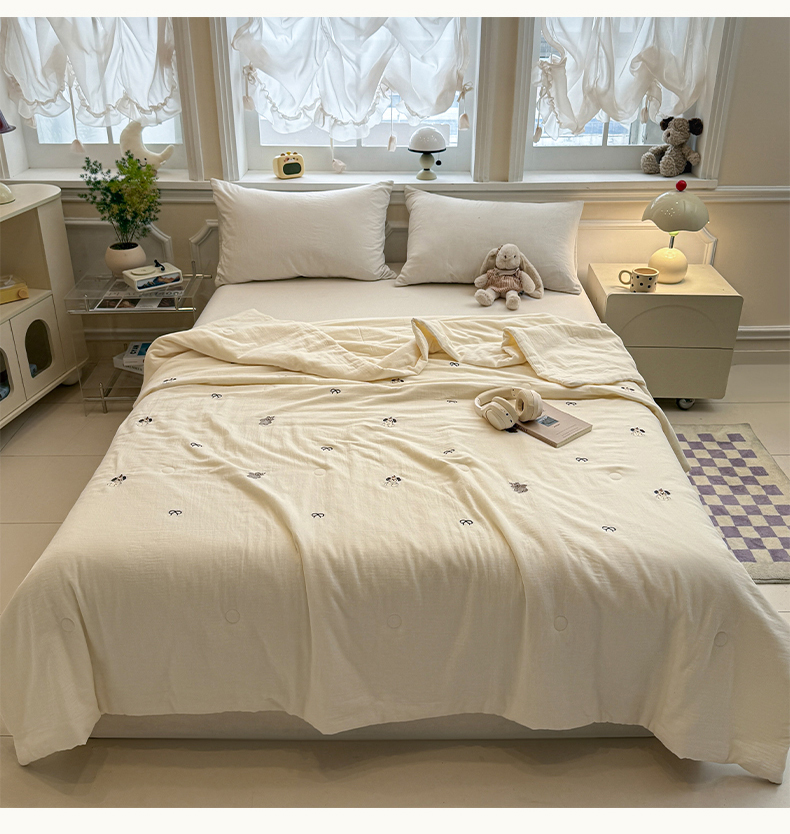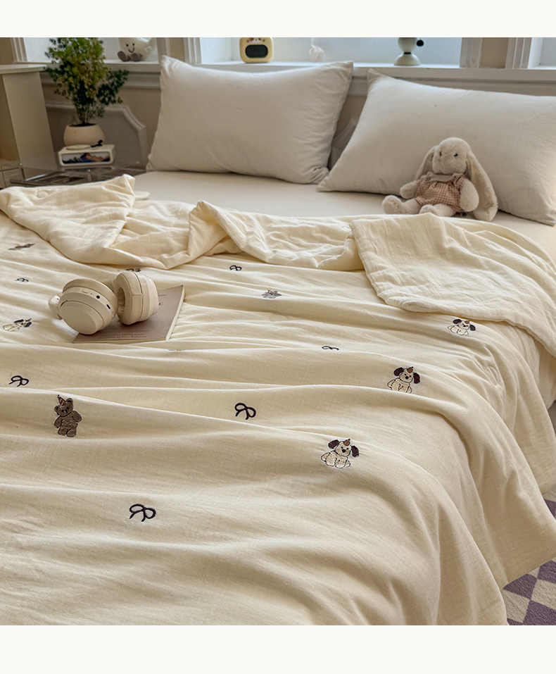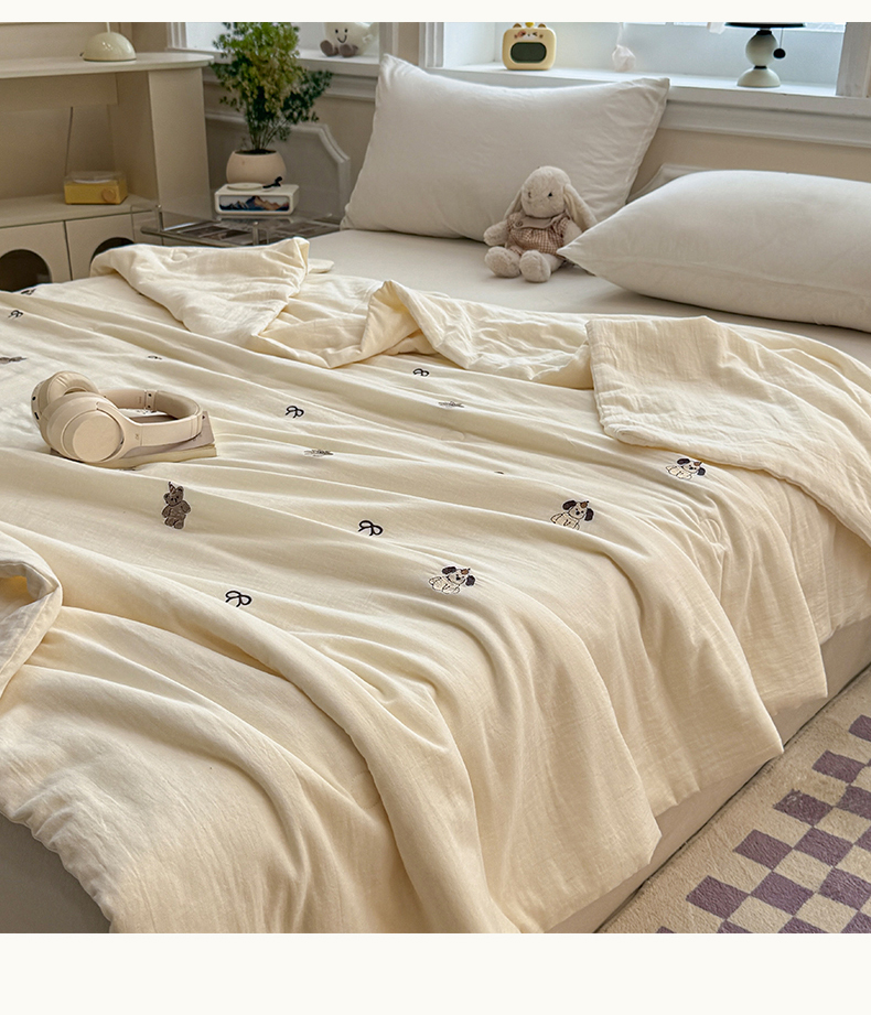 一加一 2026新款双层纱刺绣大豆夏被夏凉被空调被-夏日盟友 夏日盟友-睡睡狗