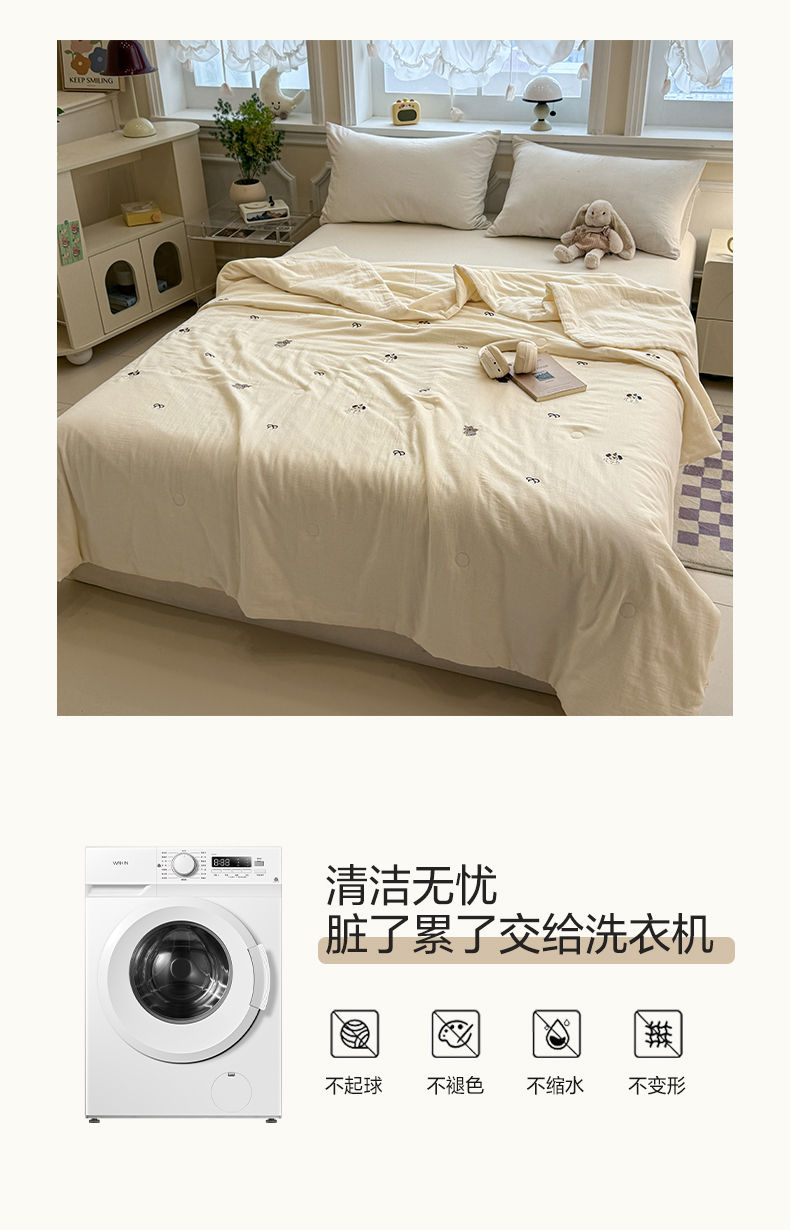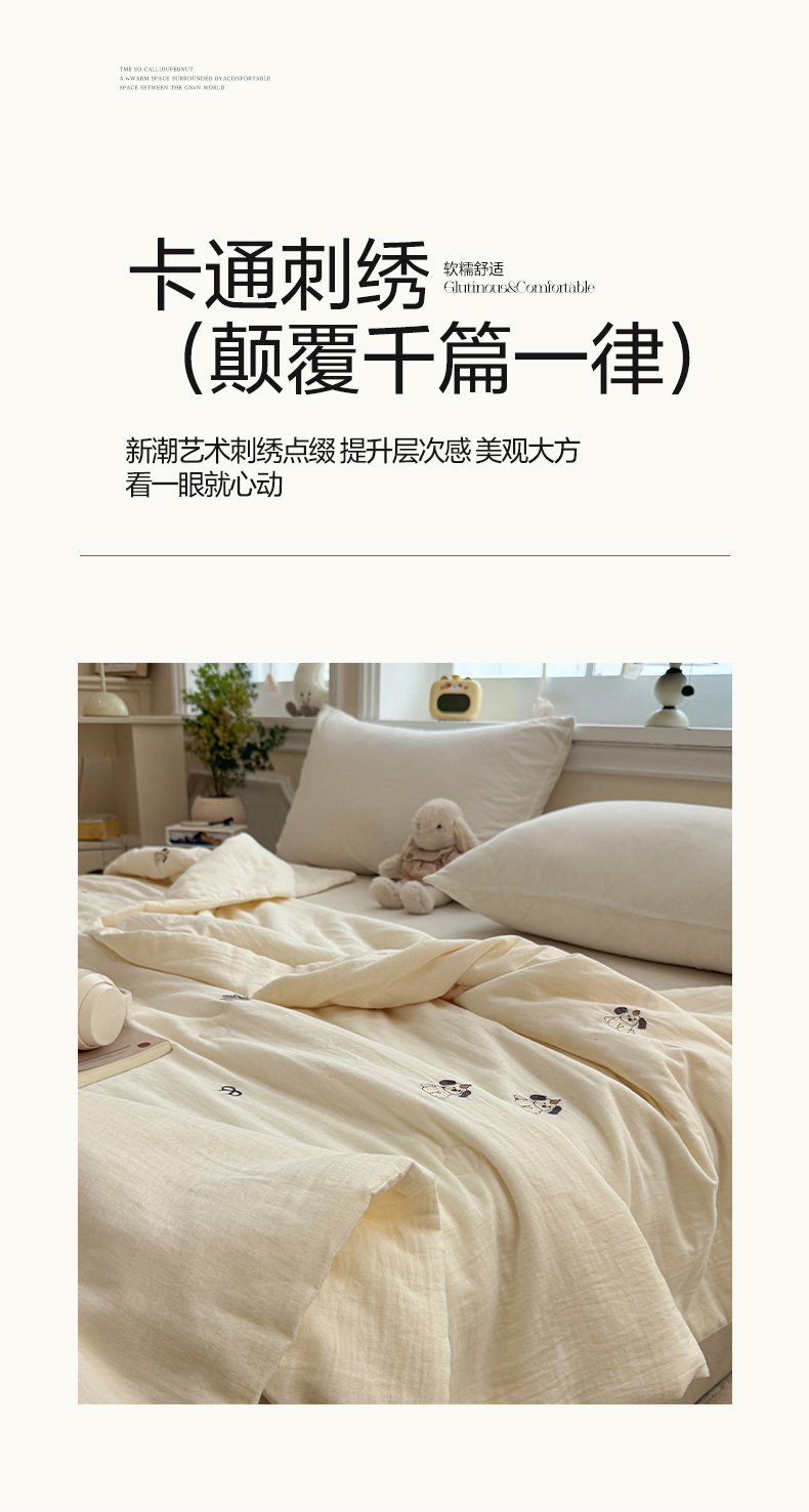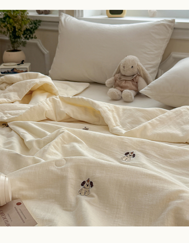 (总)一加一 2025新款全棉双层皱皱纱毛巾绣抗菌大豆被芯,快乐狗,腊肠狗,甜甜小丸子,星愿树,熊猫派对