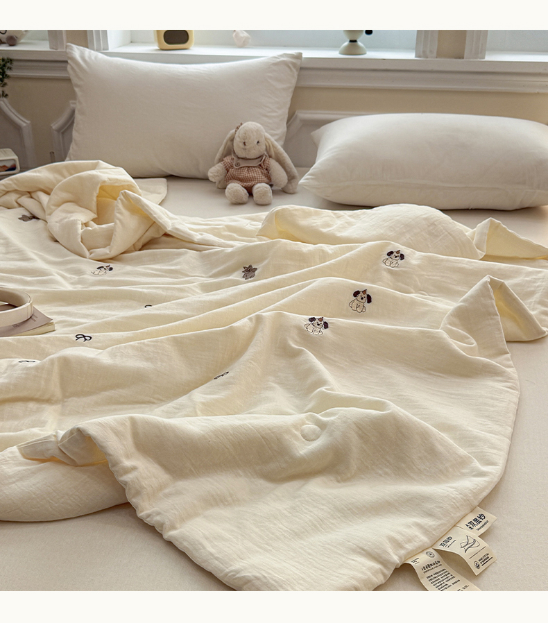 商品名称:一加一 2026新款双层纱刺绣大豆夏被夏凉被空调被-夏日盟友 夏日盟友-睡睡狗