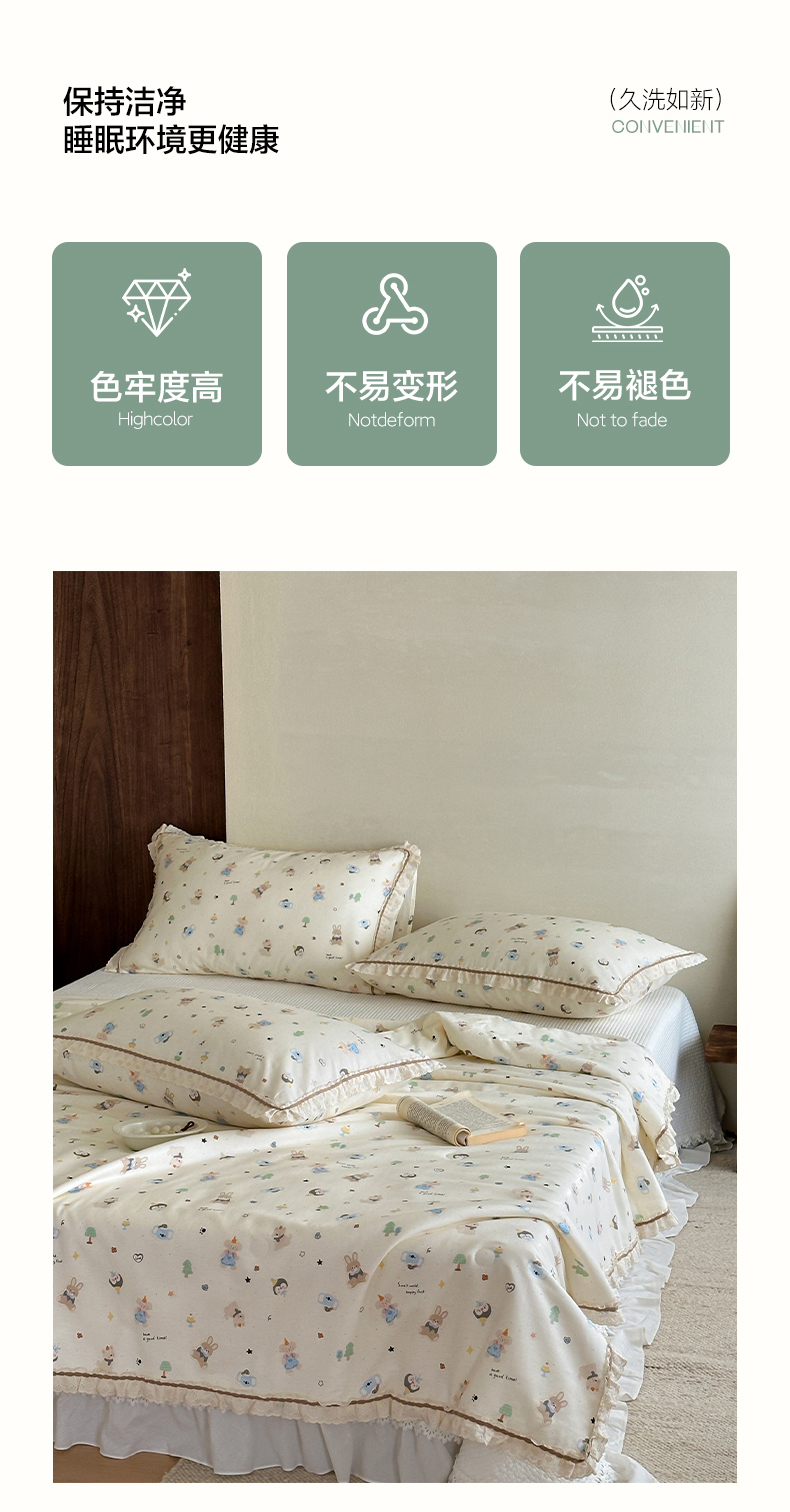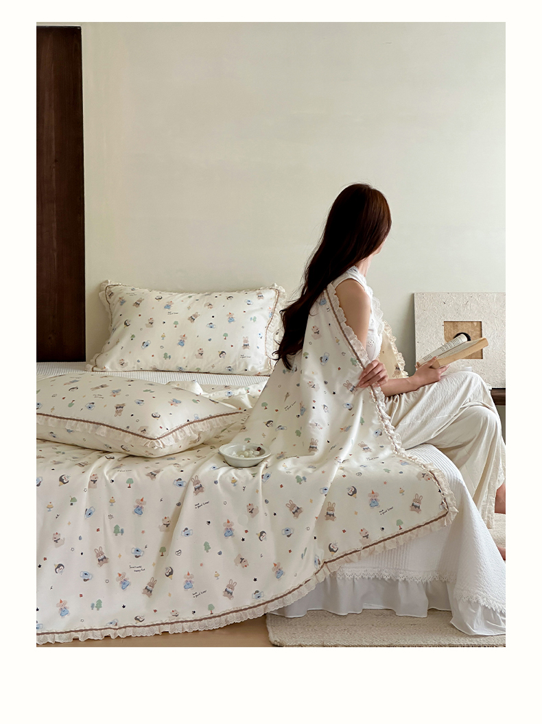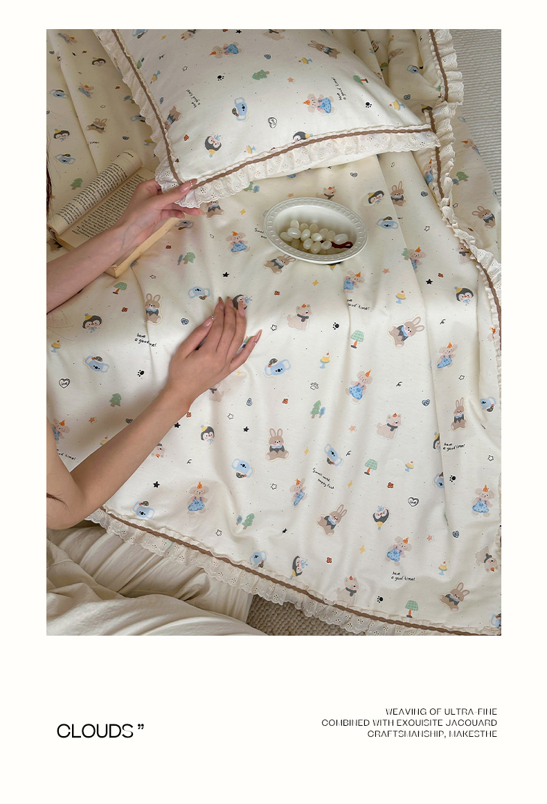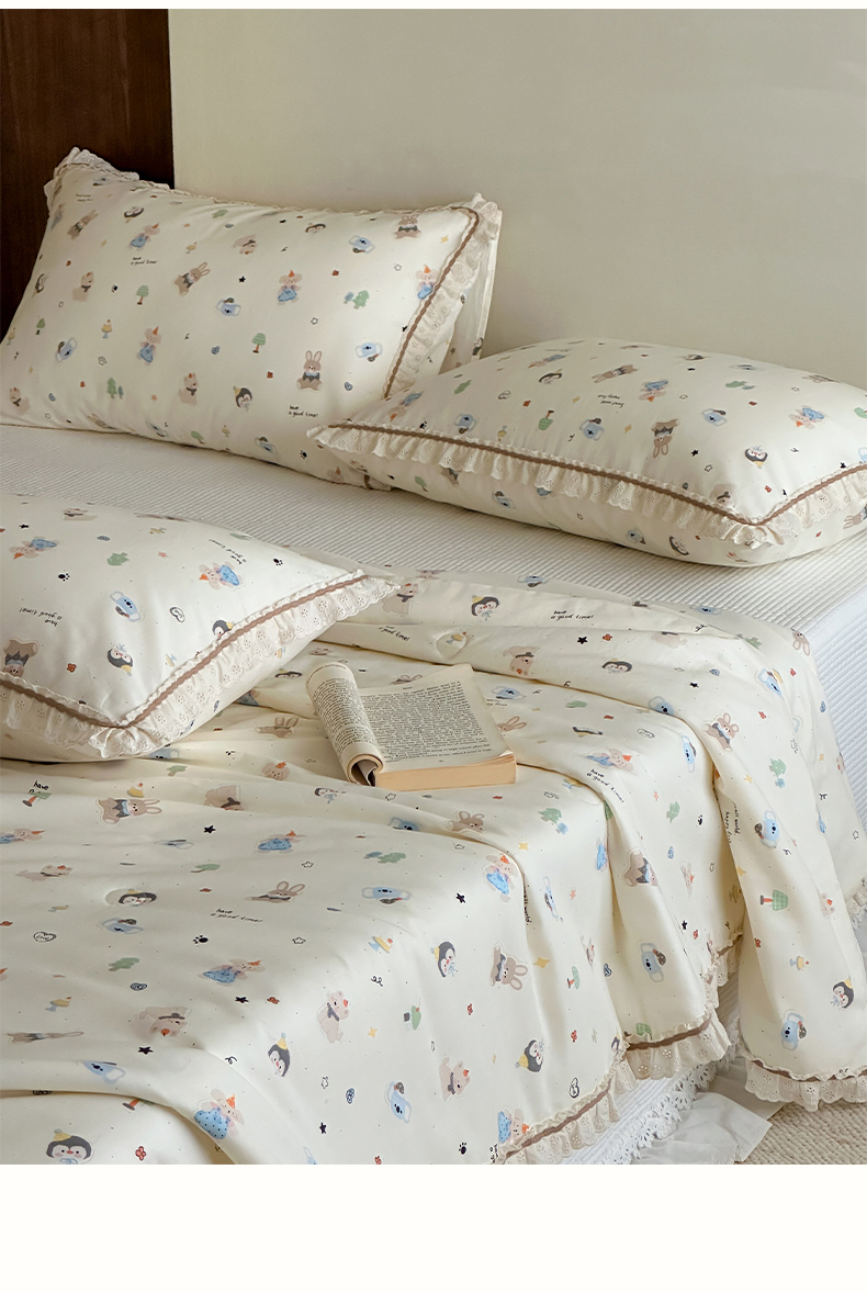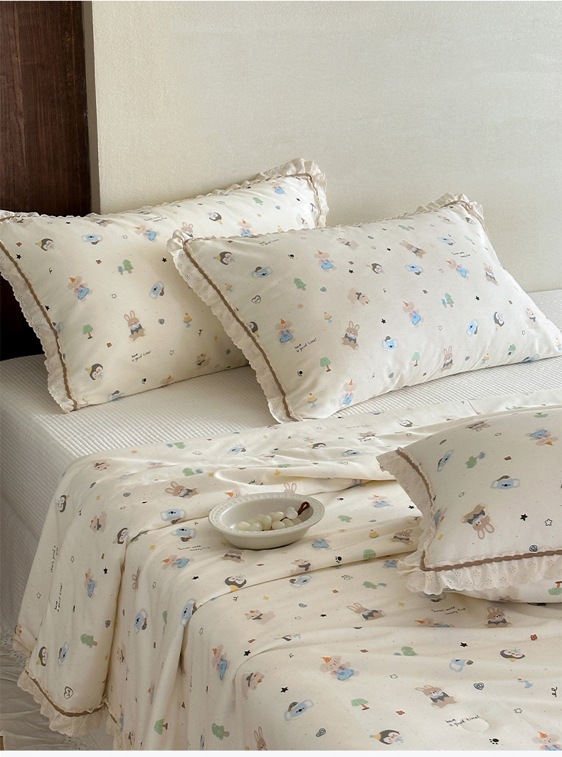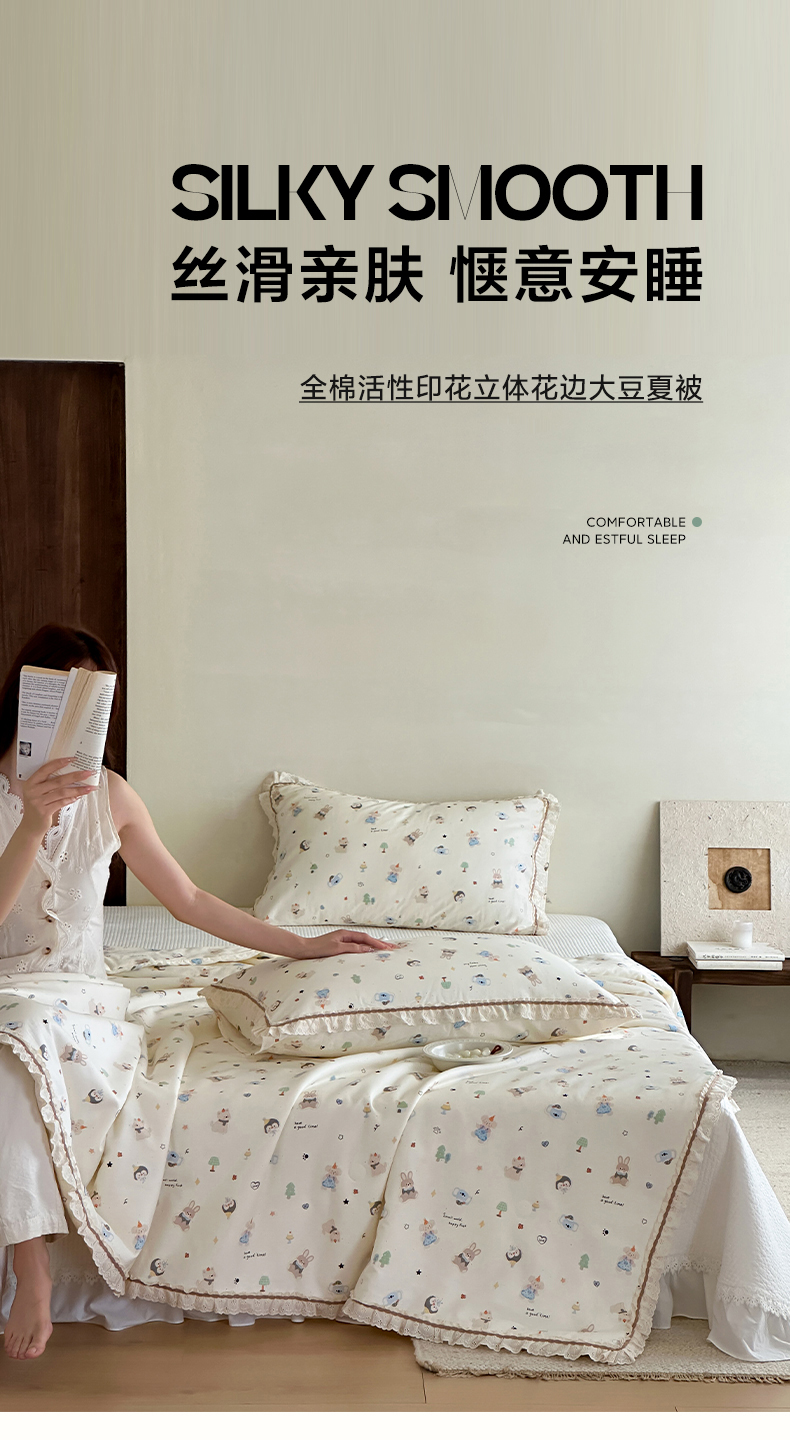 (总)一加一 2026新款全棉活性印花立体花边大豆夏被夏凉被空调被四件套,组合图仅供展示不可下单,绿芜汀,泡泡小象,浅茶春樱,浅纹蓝,浅星纱,蔷薇凝,微花耳耳,小镇漫游记,星花结,杏仁小熊仔