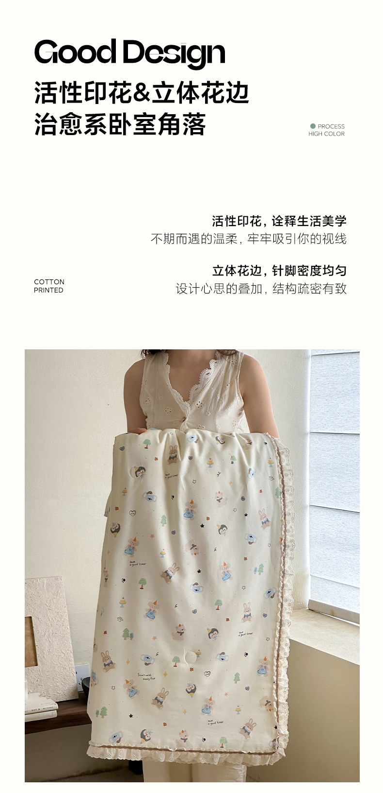 商品名称:一加一 2026新款全棉活性印花立体花边大豆夏被夏凉被空调被四件套 小镇漫游记