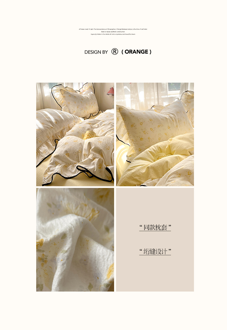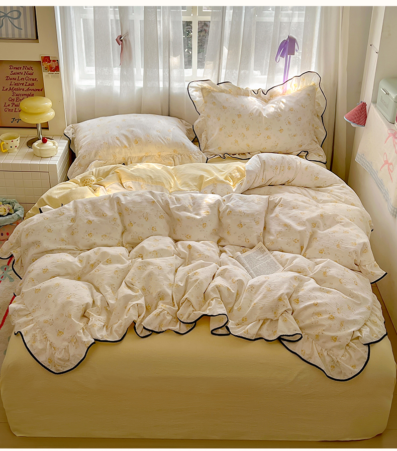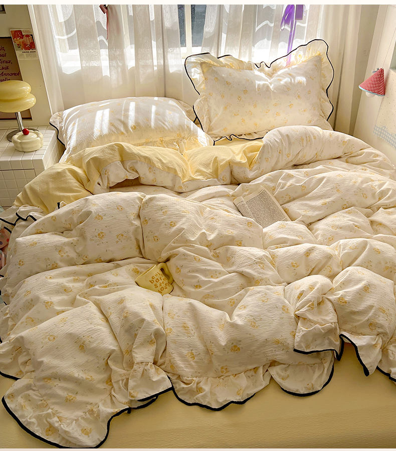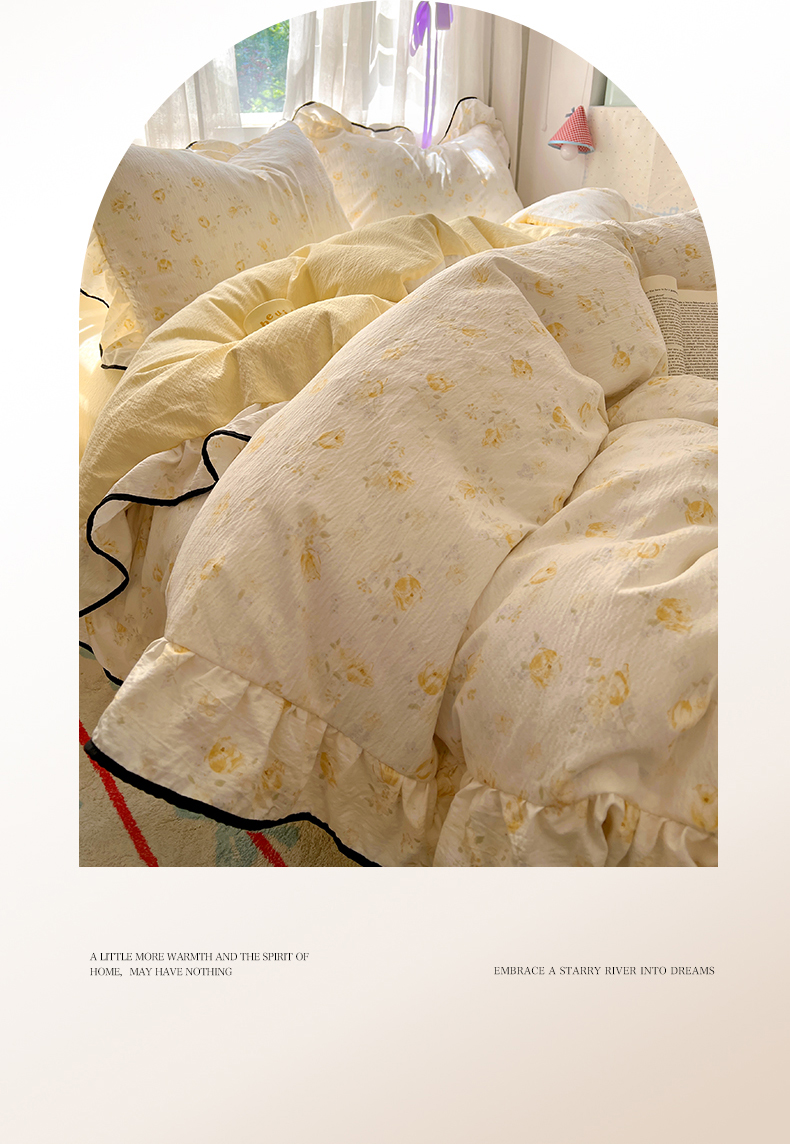 商品名称:睡美美家纺 2026新款皱皱纱肤感花边四件套 莹光