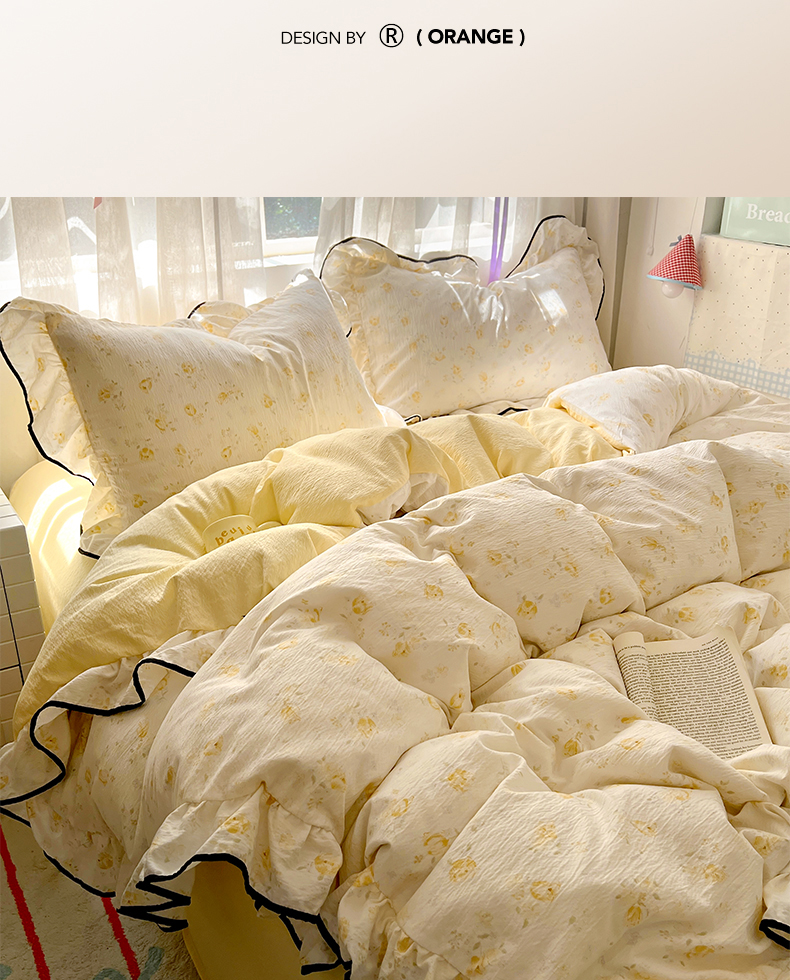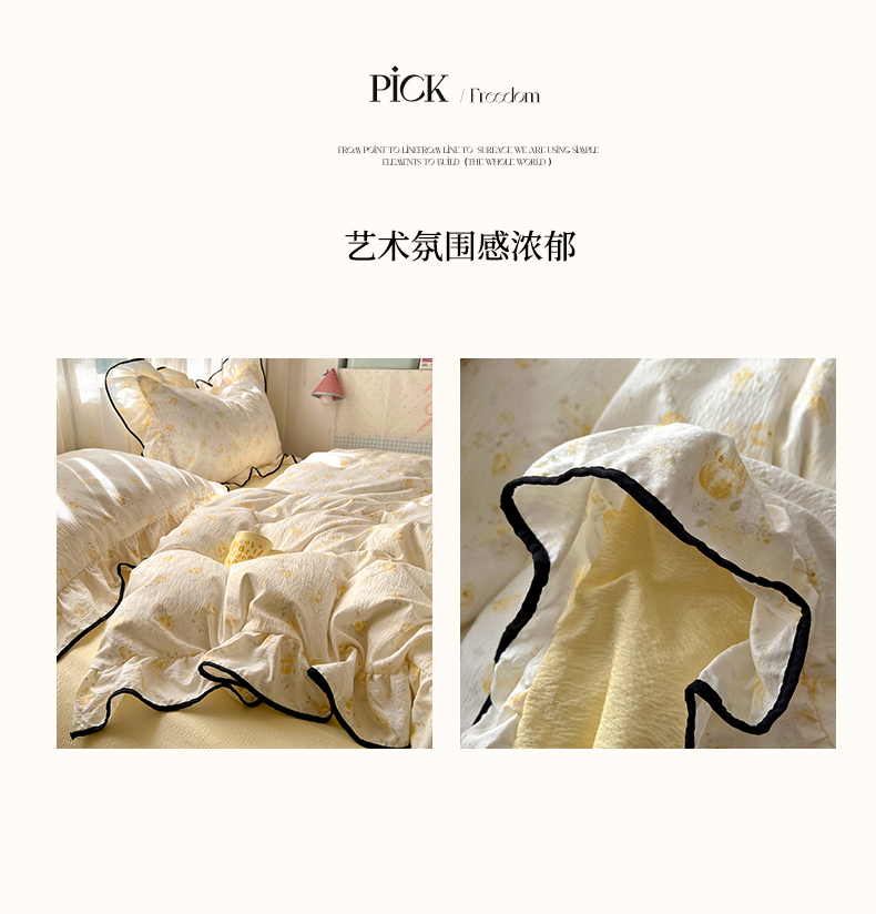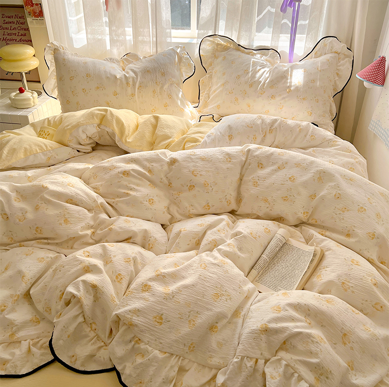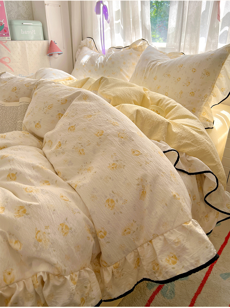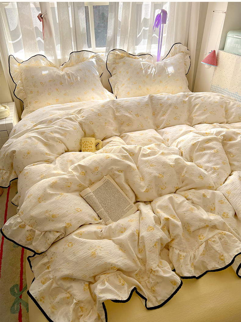 商品名称:睡美美家纺 2026新款皱皱纱肤感花边四件套 莹光