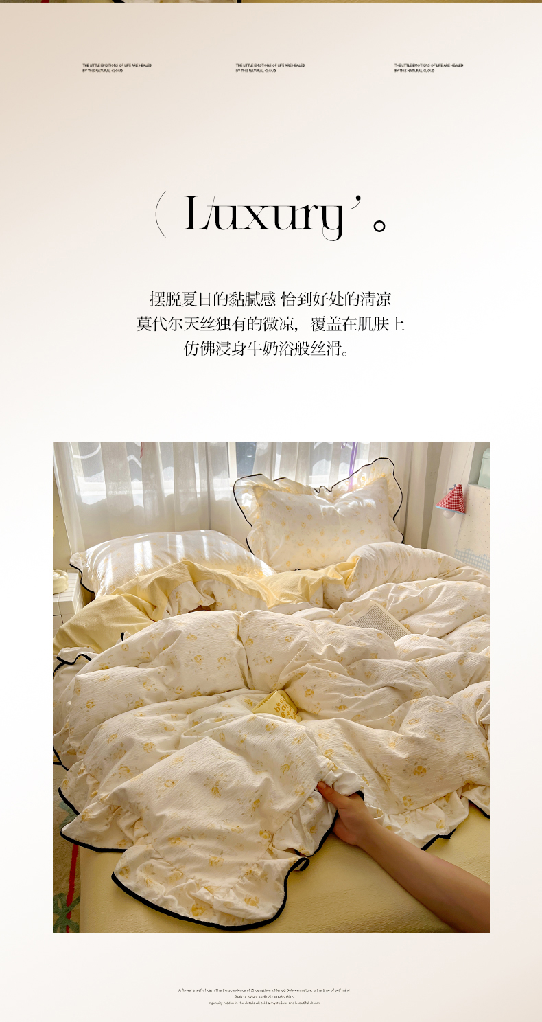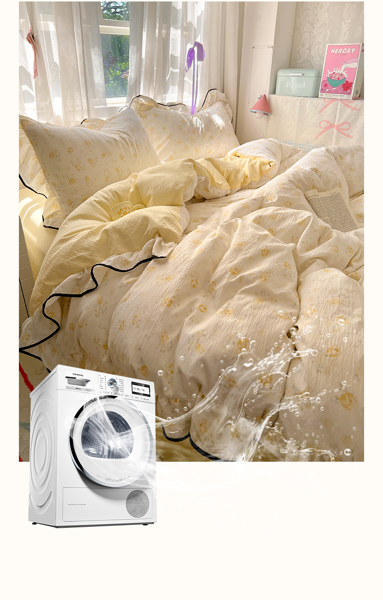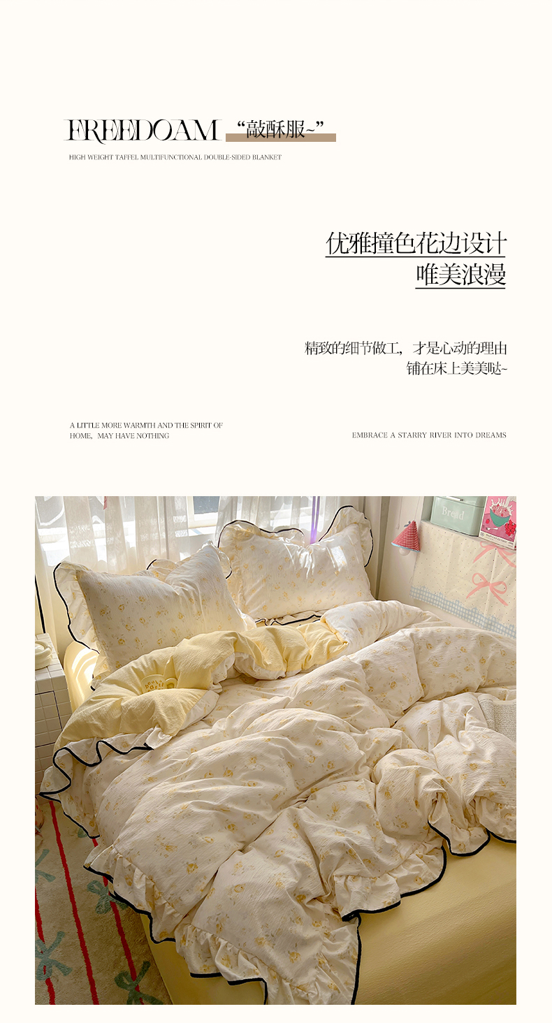 (总)睡美美家纺 2026新款水洗云朵棉亲肤花边款四件套,岛屿,蝴蝶,花序,花影,桃枝,田园,小碎花,星星人