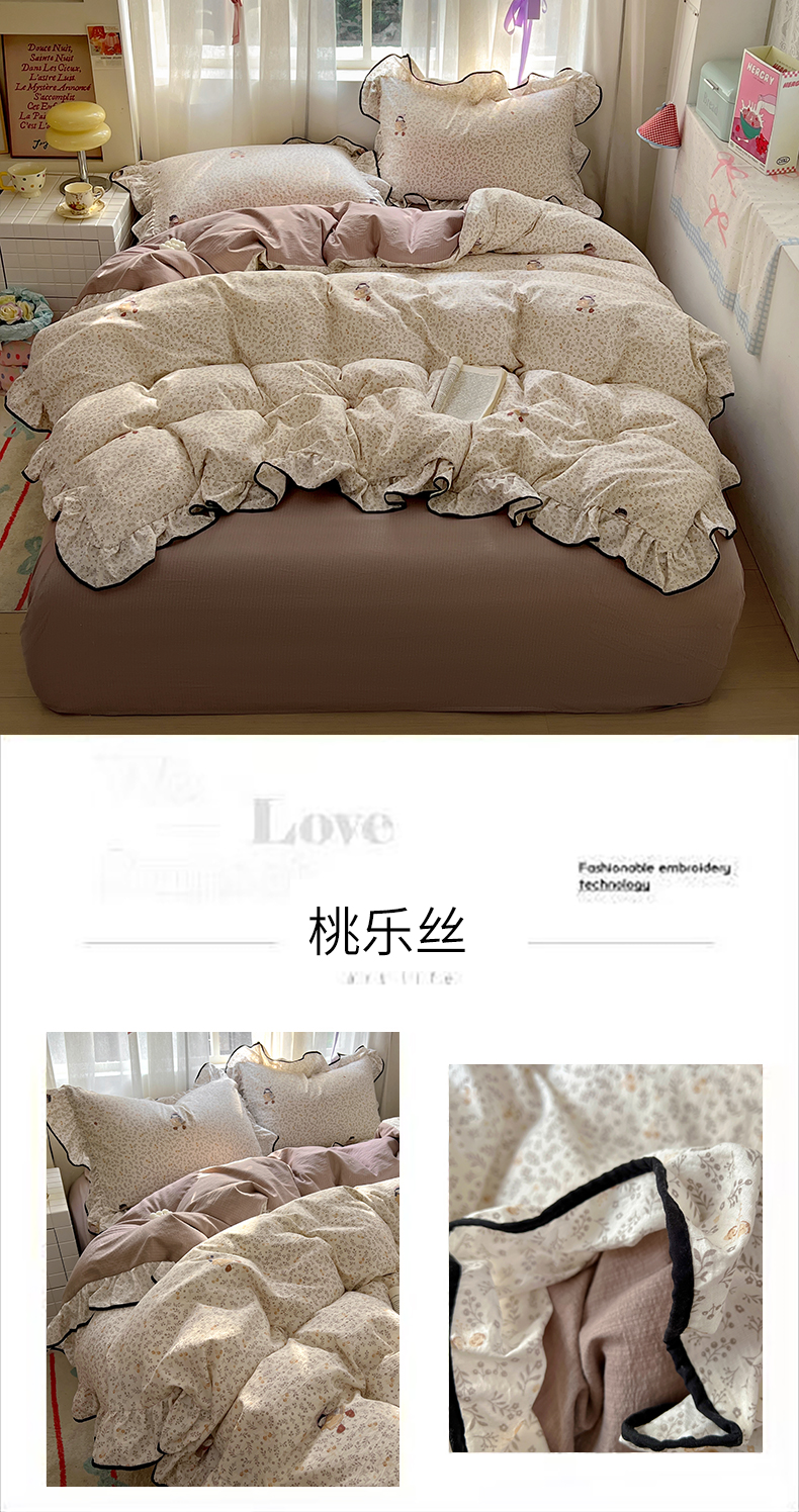 (总)睡美美家纺 2026新款A类古法水洗棉法式花边四件套,彩虹小马,春日絮语,春野,粉豹纹,粉雾蔷薇,粉漾,格纹小象,海盐奶酪,花千朵,花田兔,灰棠,剪秋,乐町小马,美式,梦华录,梦幻格趣,梦幻灰,梦露,木马乐园,奶萌喵咖,南瓜童话,俏皮狗,青花瓷,赛琳娜,森屿,疏影,水晶葡萄,甜粉小窝,甜心萌宠,小黄花,小幸运-蓝,絮语,鱼多多