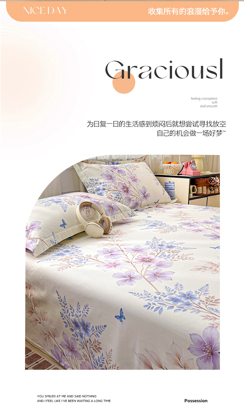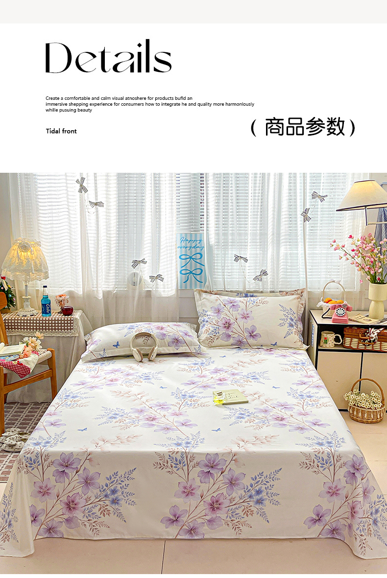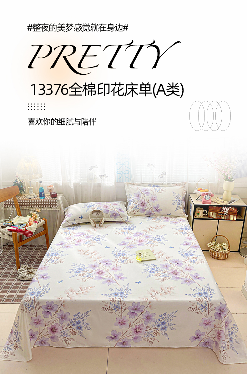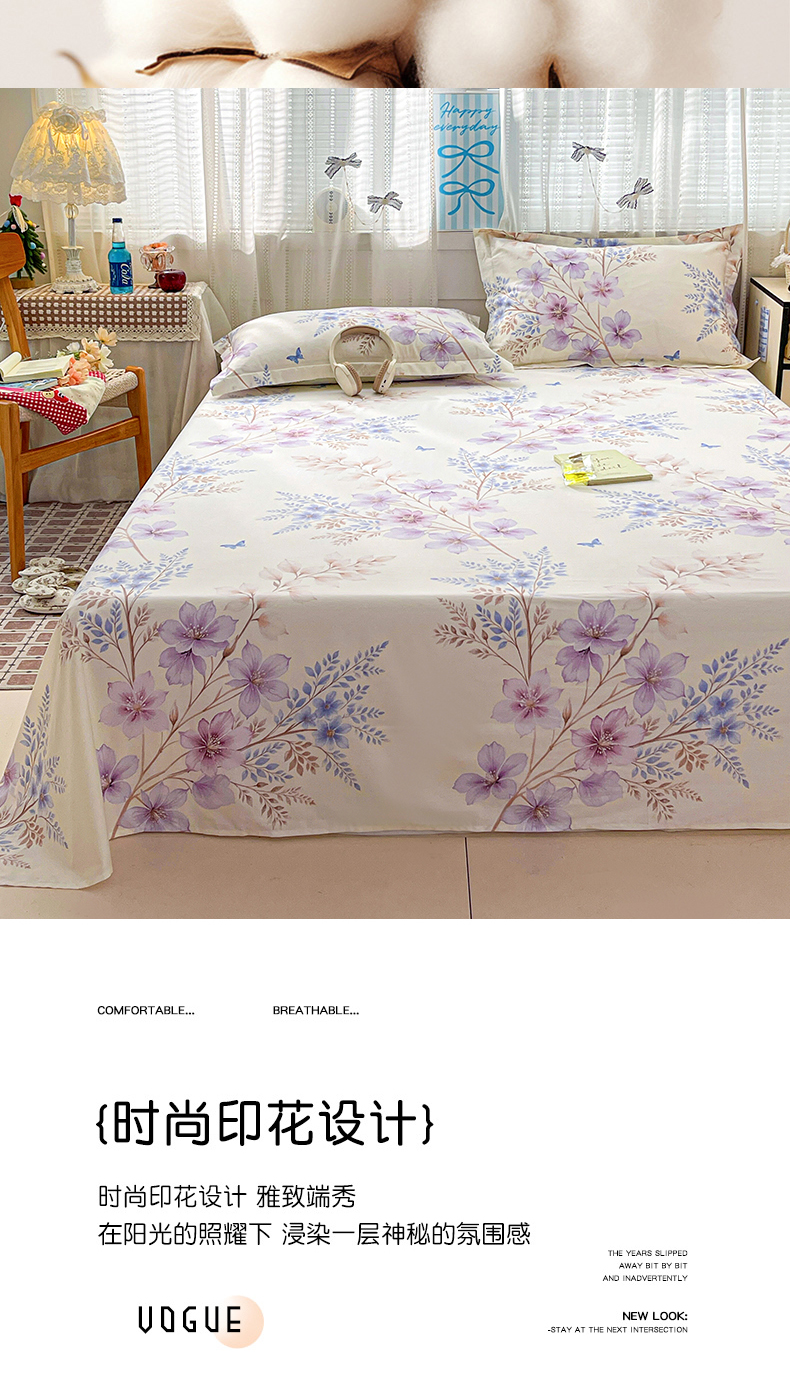 商品名称:大柏树 2026新款全棉纯棉13376印花单床单单品床单床单单件 晴川