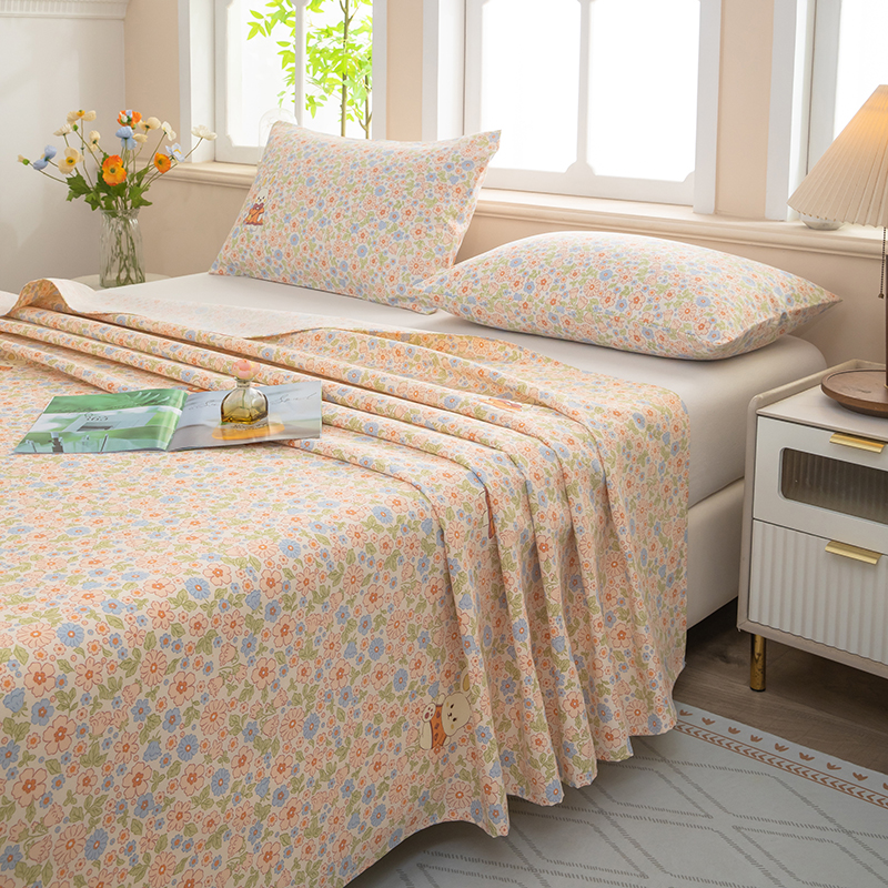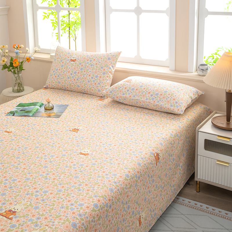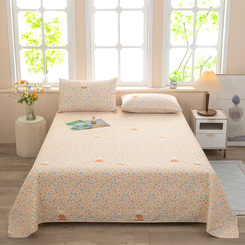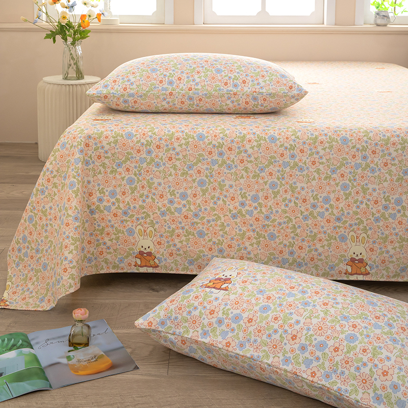 • 91家纺网 家纺一手货源 找家纺 帛洵家纺 2026新款A类原棉细纱印花老粗布凉席床单 碎花小兔