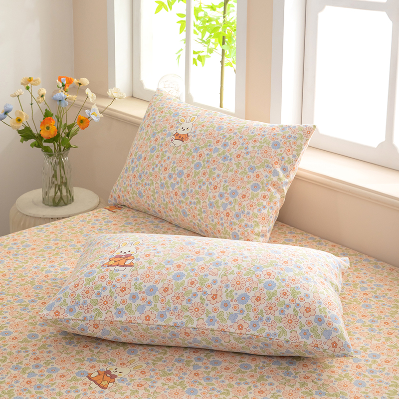 帛洵家纺 2026新款A类原棉细纱印花老粗布凉席床单 碎花小兔