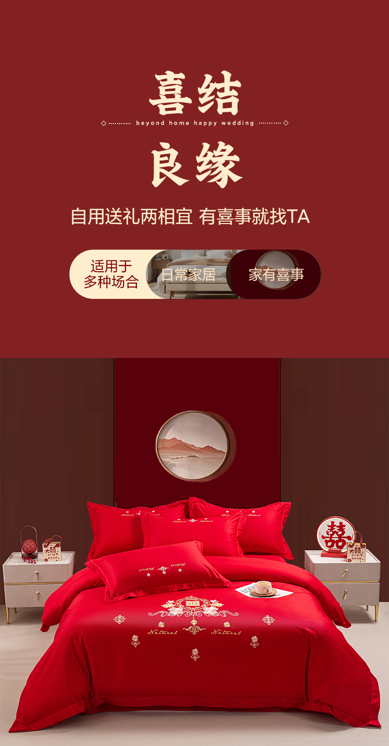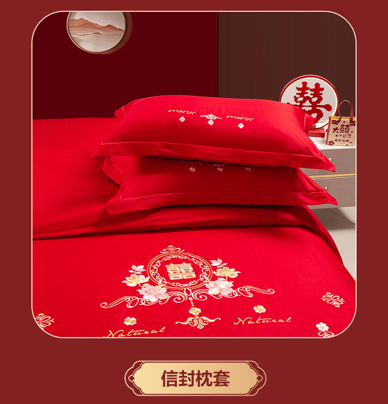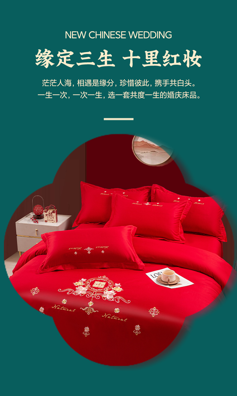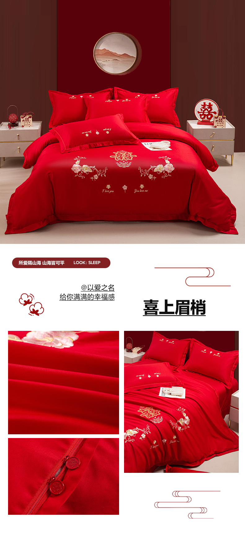(总)银石 2024新款60新疆长绒棉大红婚庆绣花四件套,倾心一片,山河见证,心心相印,永结同心,浪漫时刻,吉祥如意,龙凤报喜