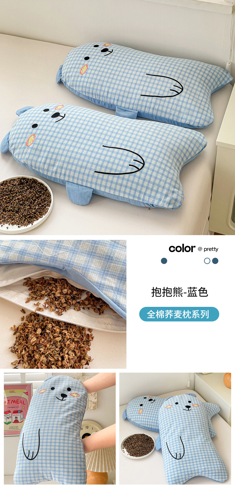 商品名称:(总)梦叶草 2026新款全棉抱抱熊荞麦枕枕头枕芯