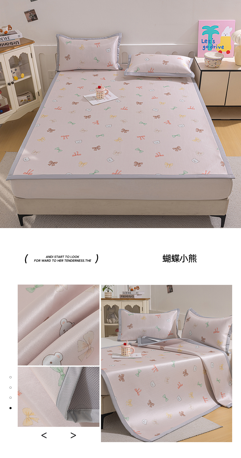 商品名称:小萌虎 2026新款碳光冰丝席平铺款床席款 蝴蝶小熊