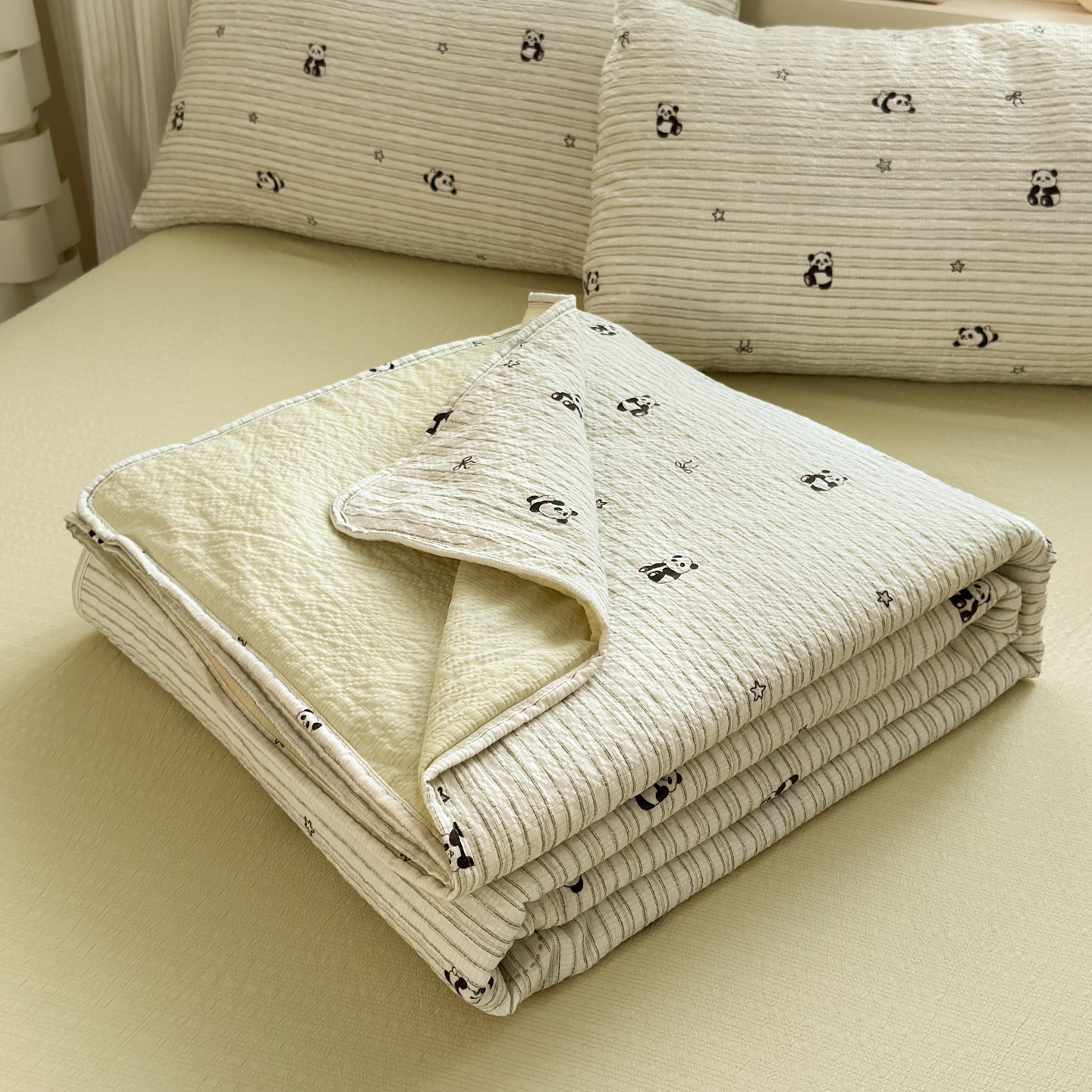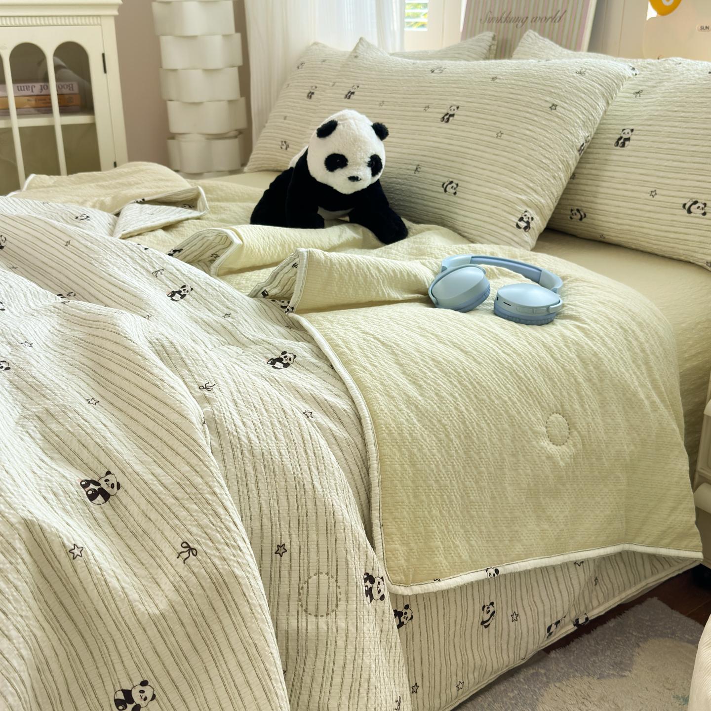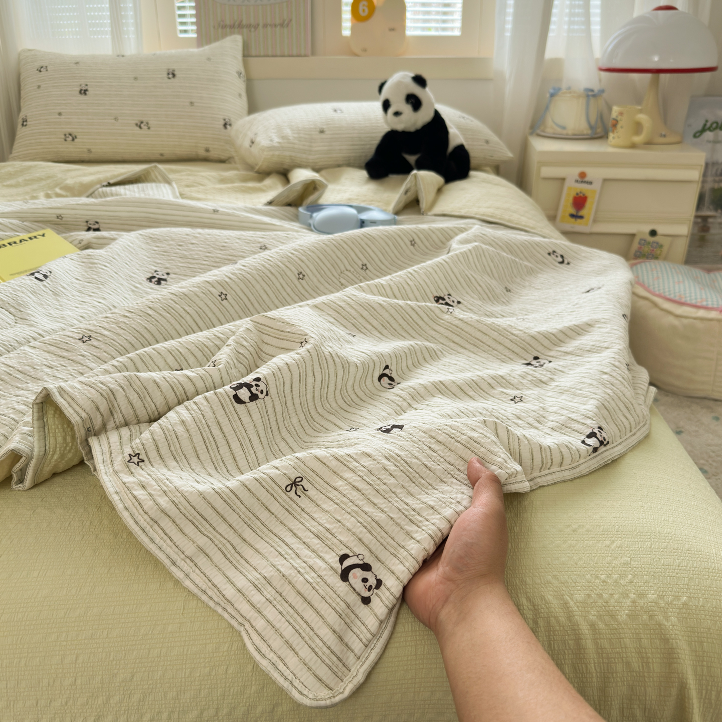 德比尔斯 2026新款泡芙棉夏被四件套包边款 可爱熊猫
