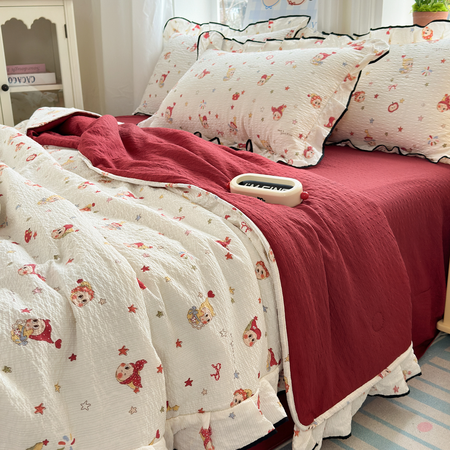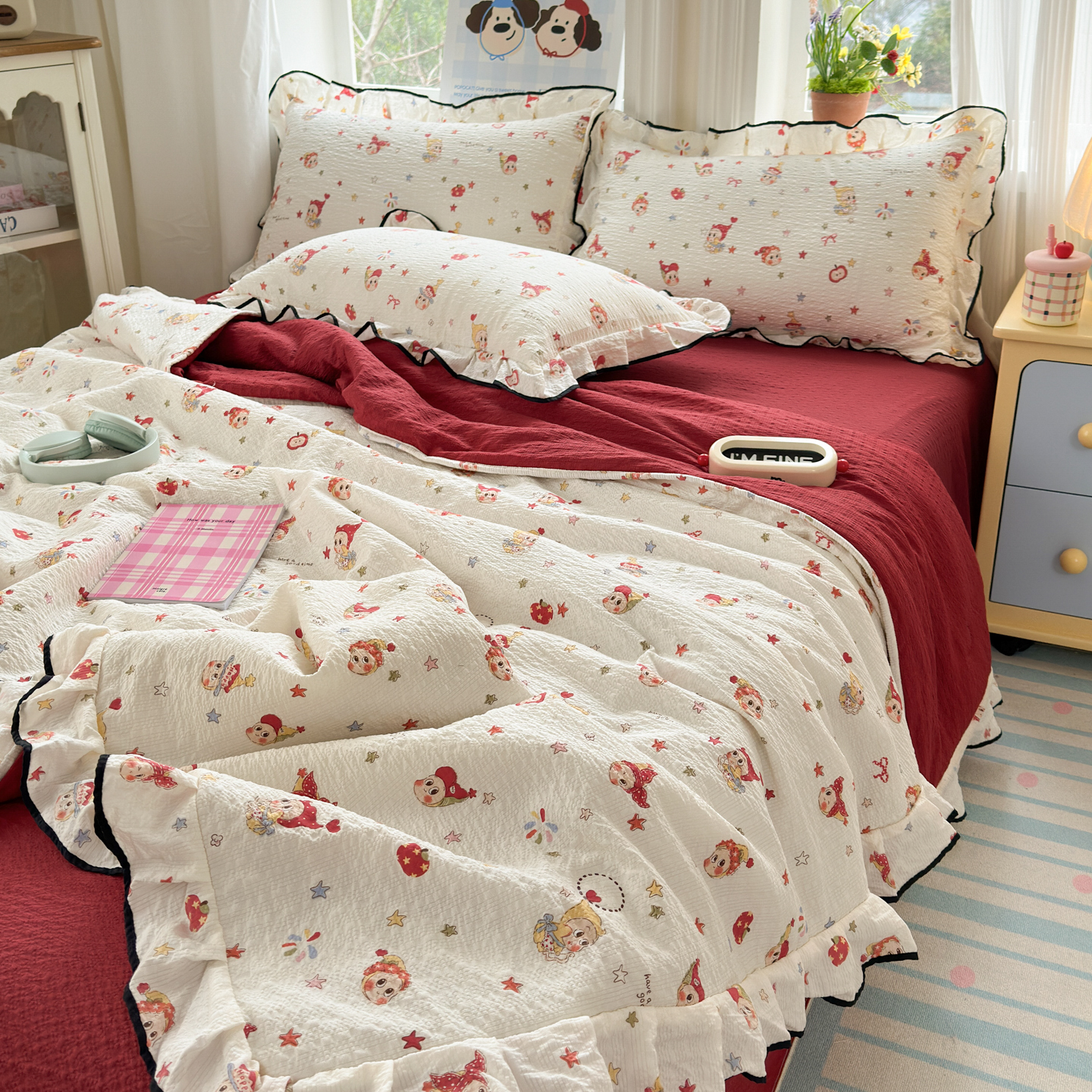 德比尔斯 2026新款泡芙棉夏被四件套花边款 童话小矮人