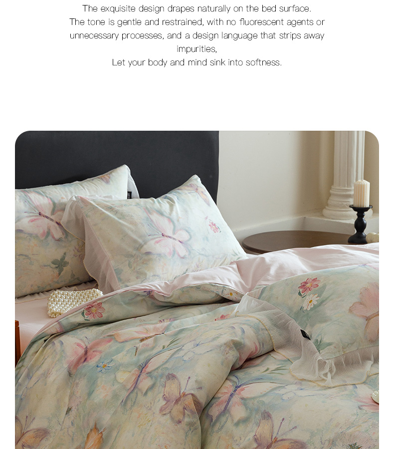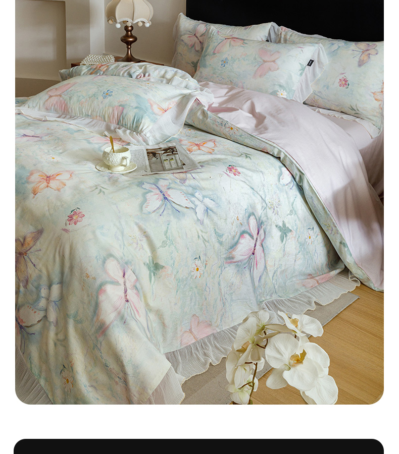 (总)卡姿家纺 2026春夏天丝棉麻裸感超柔四件套— 梦蝶,梦蝶米白,梦蝶浅粉,梦蝶浅蓝