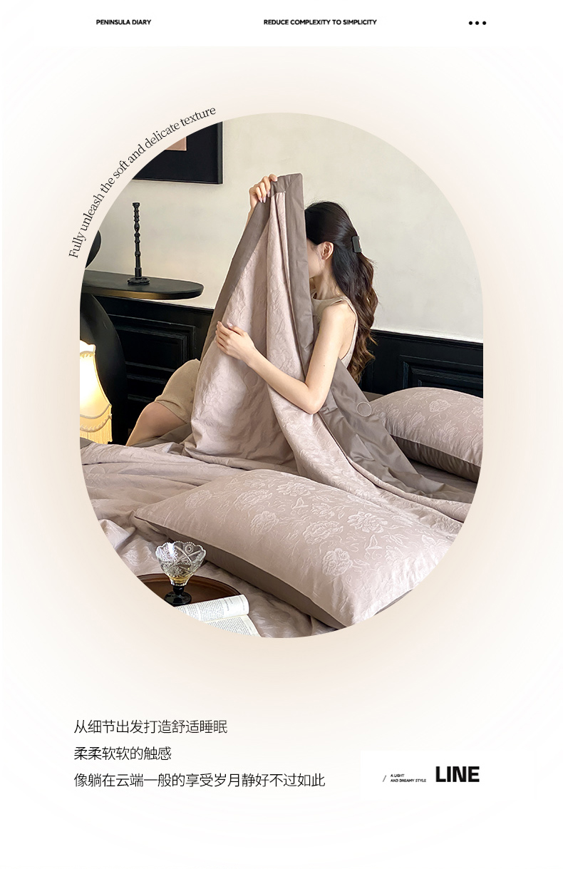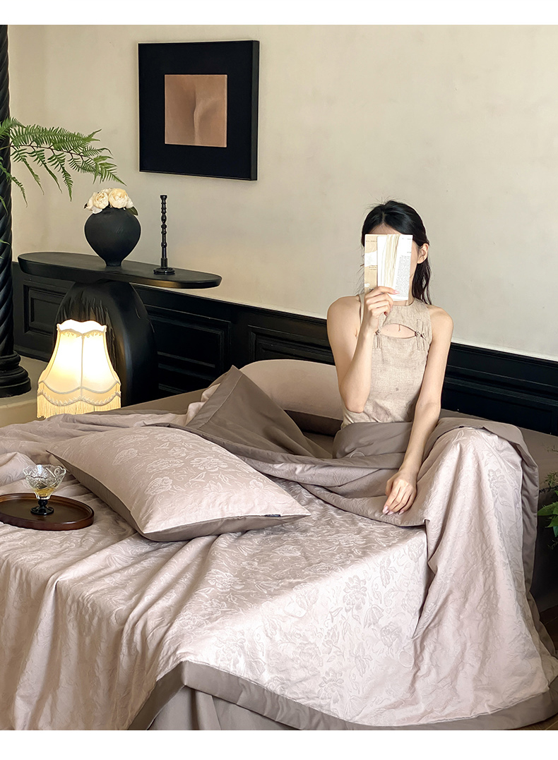 (总)宜代光年 2026新款亚麻大提花贡缎磨毛四件套系列 侘寂风花型系列,斑驳-米麻,观花芷-米麻,观花芷-银灰,清玉絮-葡萄紫,清玉絮-鲜蓝,素简