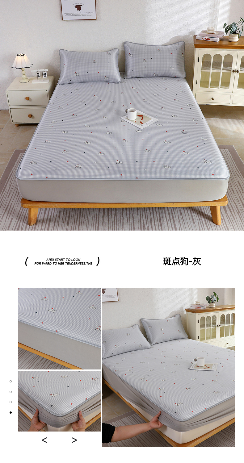 商品名称:小萌虎 2026新款碳光冰丝凉席床笠款拍法二 斑点狗-灰