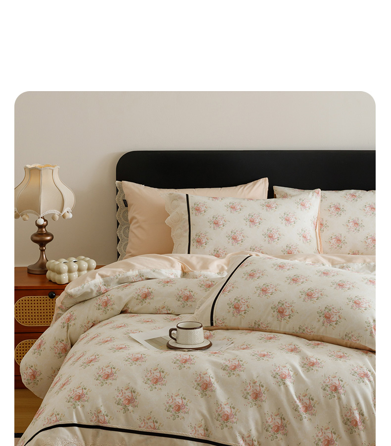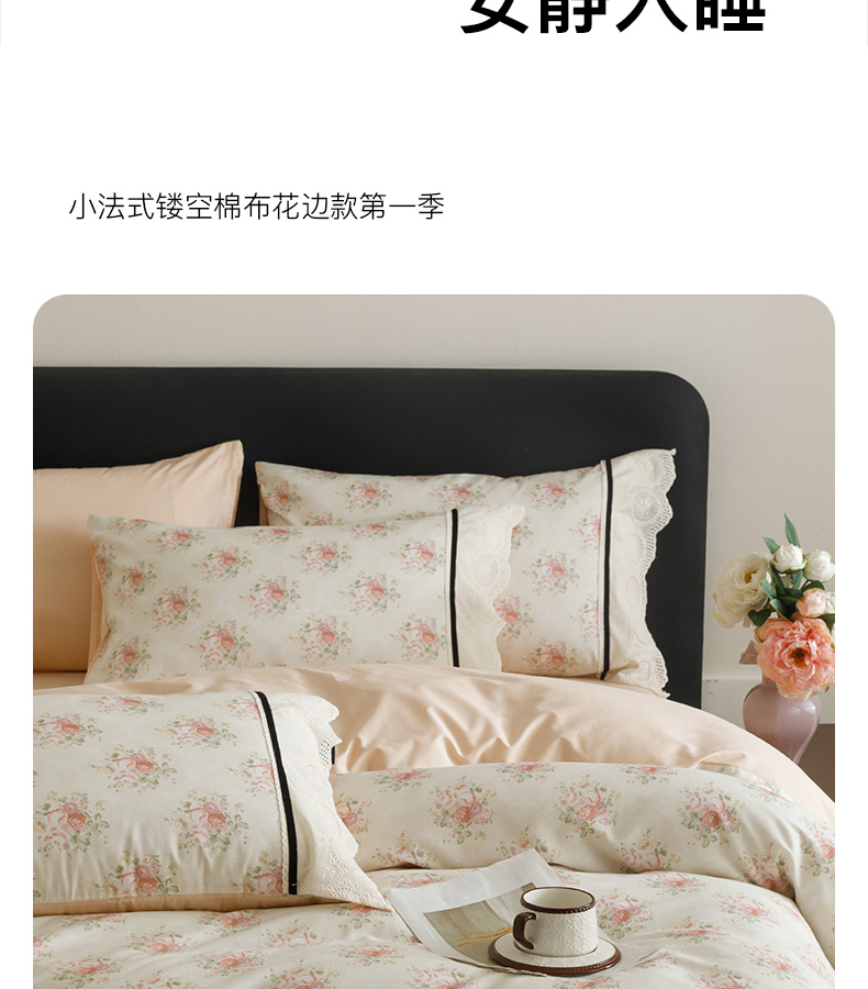 (总)卡姿家纺 全棉小法式镂空棉布花边款第一季四件套,花雾漫纱,玫瑰绘梦,蔷薇诗行,庭前芳序,雾岛听花,絮影轻扬