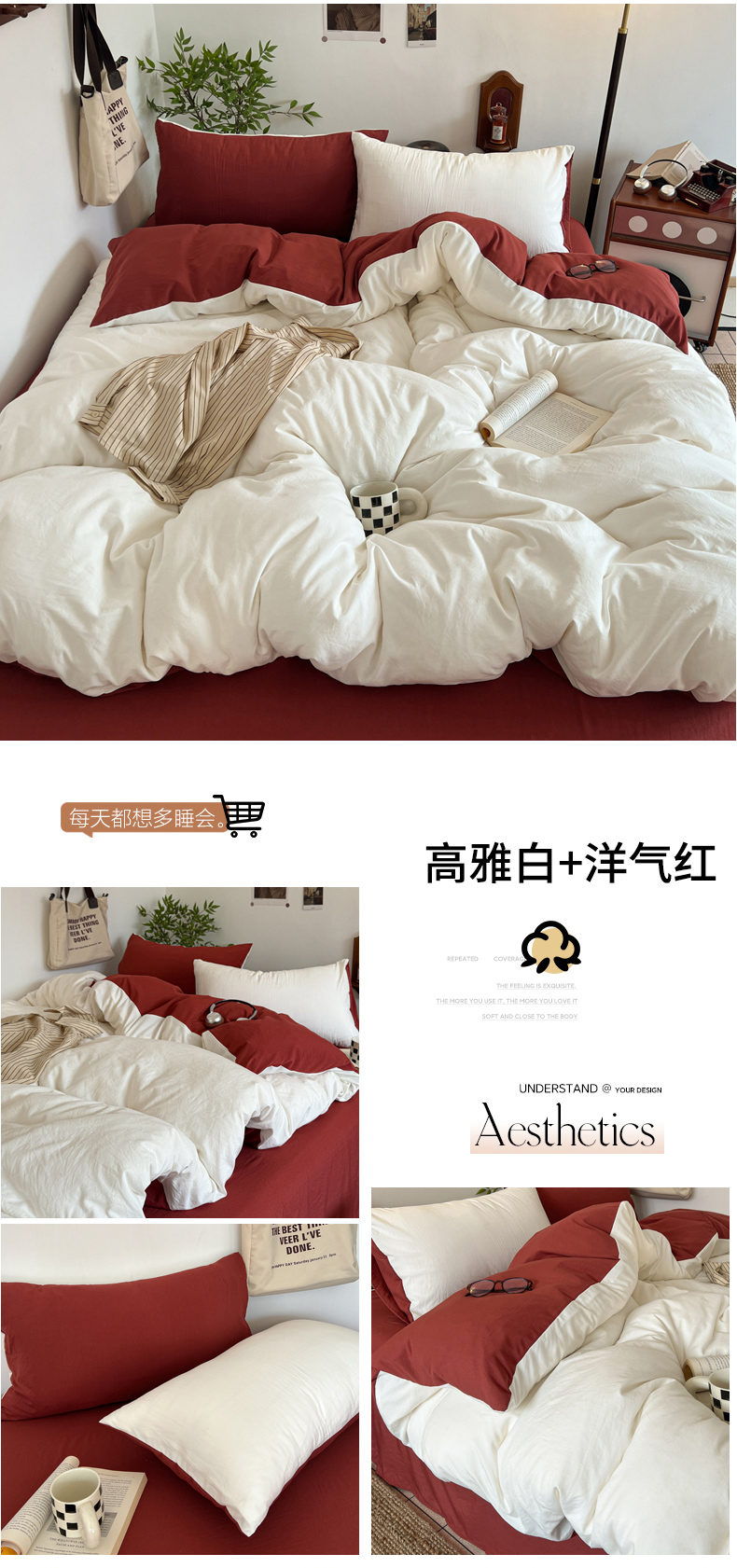 当前位置: 91家纺网 > 商品网购 > 床品套件 > 四件套 > 化纤普通四件套 > 梦嘉居 2026新款亲肤纯色AB版水洗皱皱棉四件套学生宿舍床单床笠三件套 高雅白+洋气红