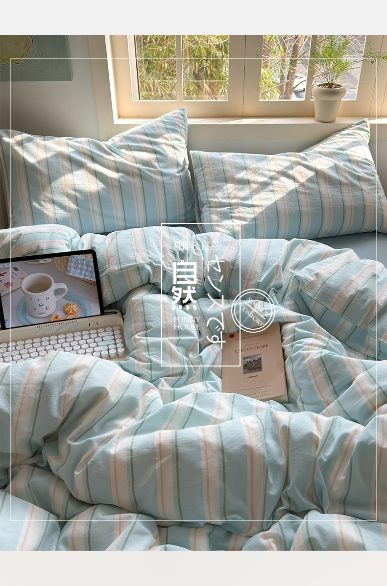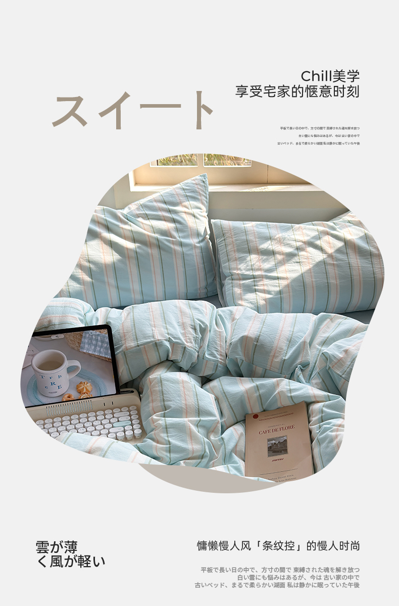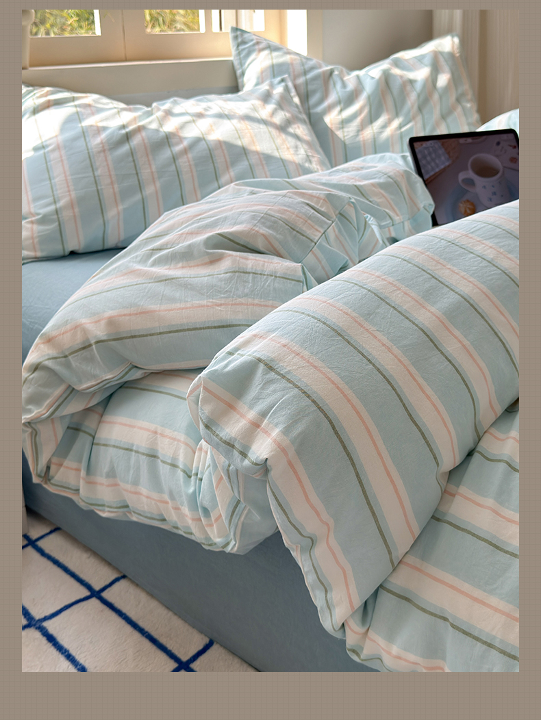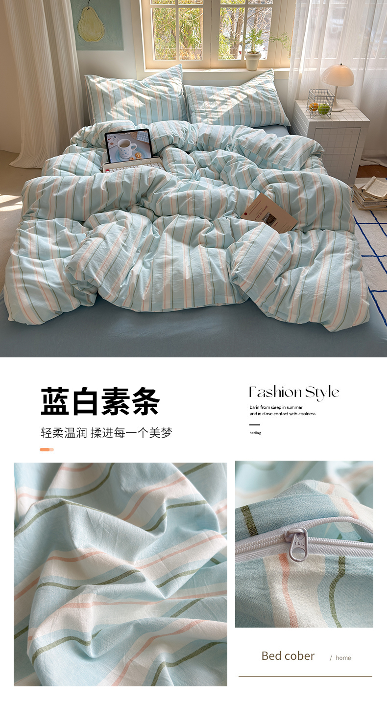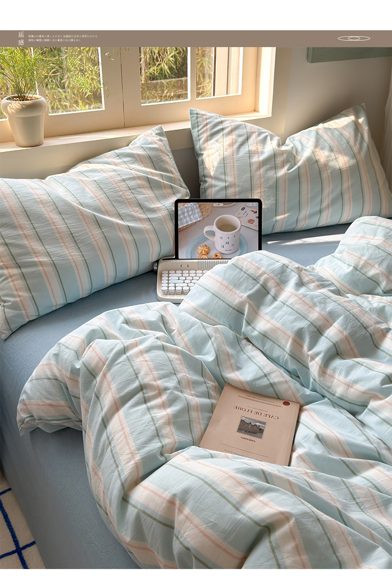 当前位置: 91家纺网 > 商品网购 > 床品套件 > 四件套 > 全棉普通四件套 > 北欧良品 2026新款全棉色织水洗慵懒风条纹四件套 蓝白素条