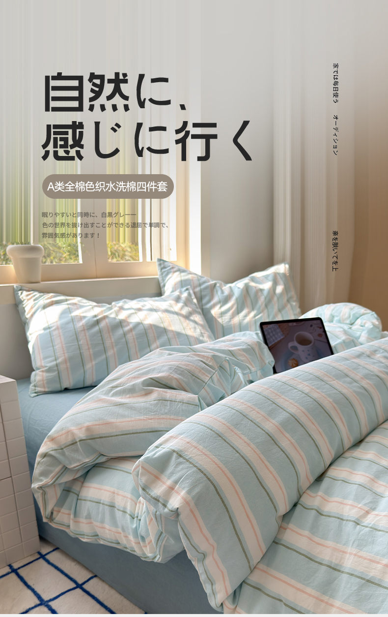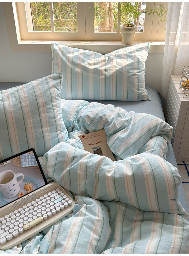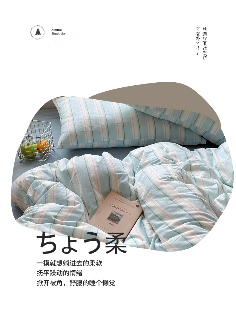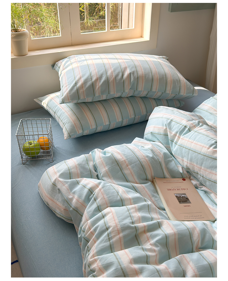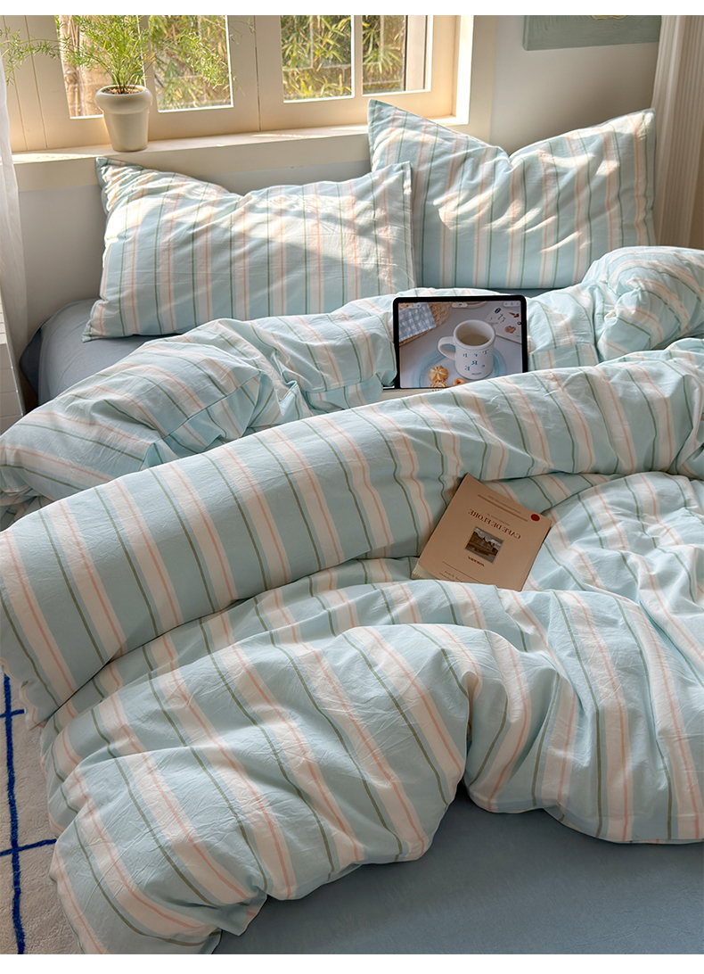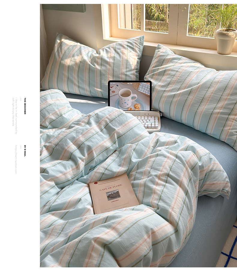 当前位置: 91家纺网 > 商品网购 > 床品套件 > 四件套 > 全棉普通四件套 > 北欧良品 2026新款全棉色织水洗慵懒风条纹四件套 蓝白素条