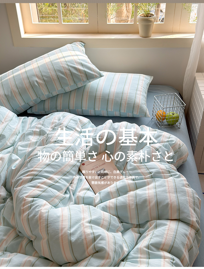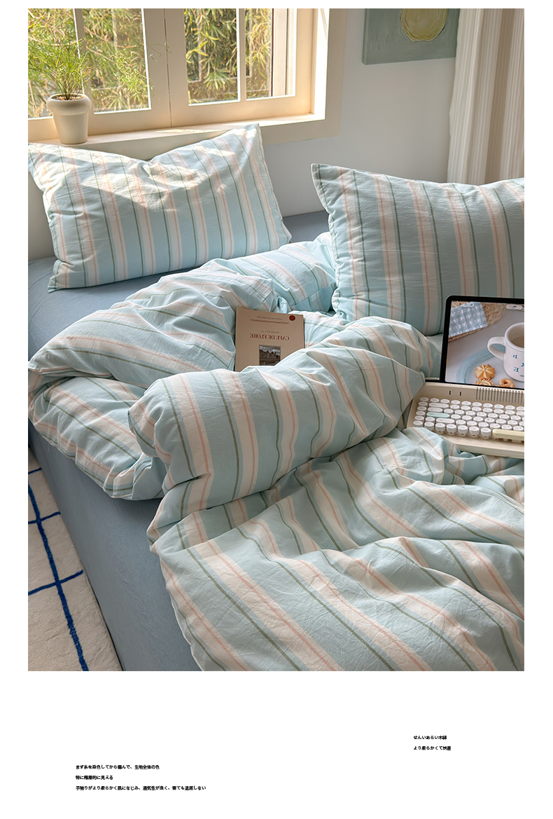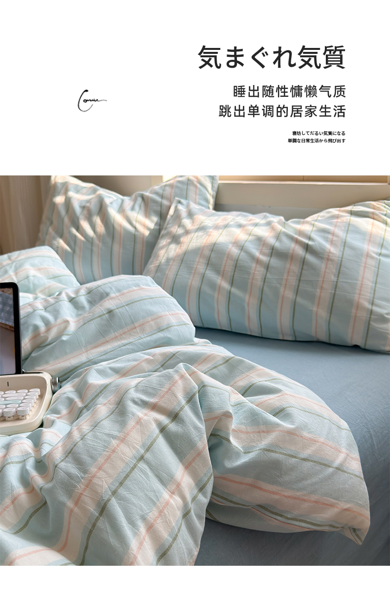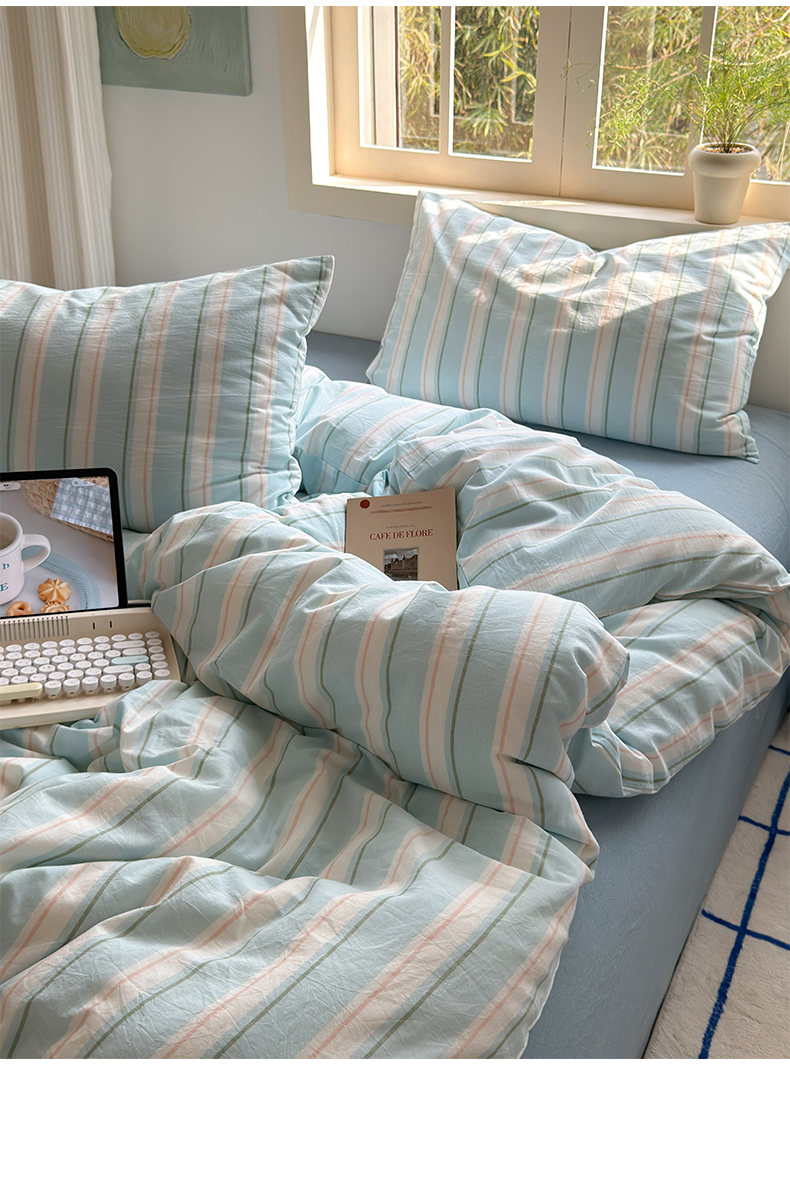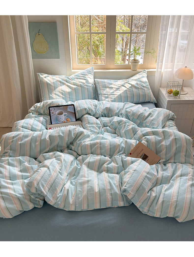 当前位置: 91家纺网 > 商品网购 > 床品套件 > 四件套 > 全棉普通四件套 > 北欧良品 2026新款全棉色织水洗慵懒风条纹四件套 蓝白素条
