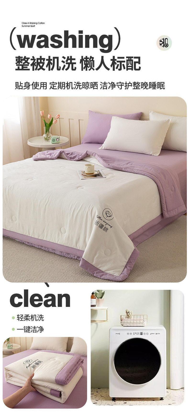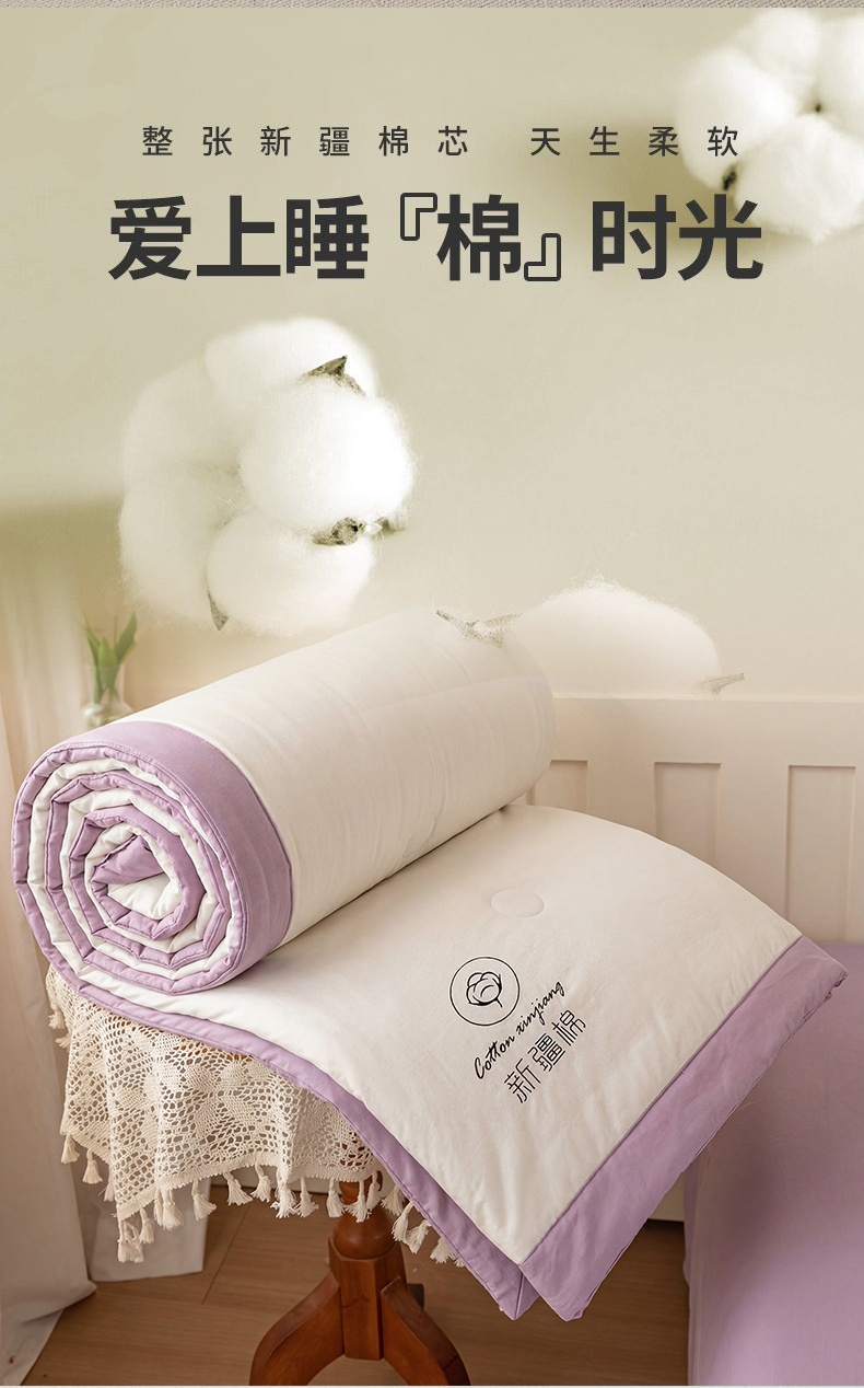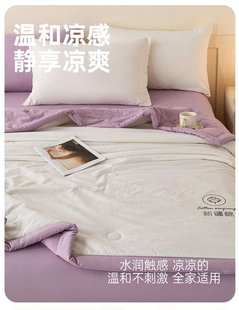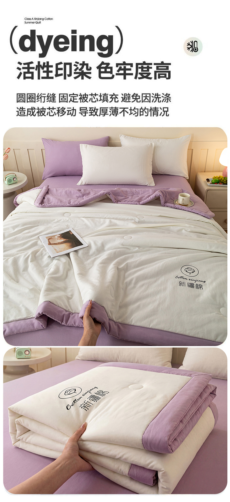 商品名称:安琪家纺 2026春夏新款A类新疆棉花纯色撞色双拼夏被夏凉被空调被 双拼-白紫