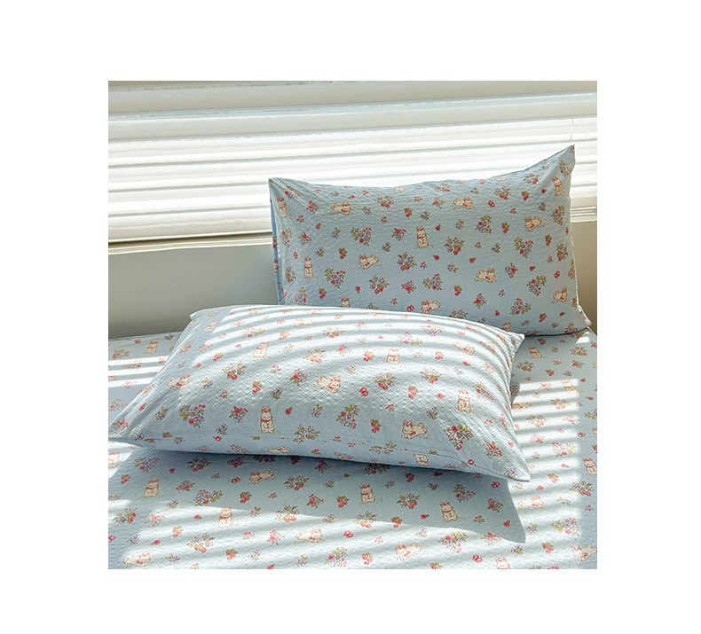 当前位置: 91家纺网 > 商品网购 > 床上用品 > 床笠 > 梵朴 2026新款A类泡芙棉云感木棉邹邹纱双层纱床笠三件套 猫咪蓝