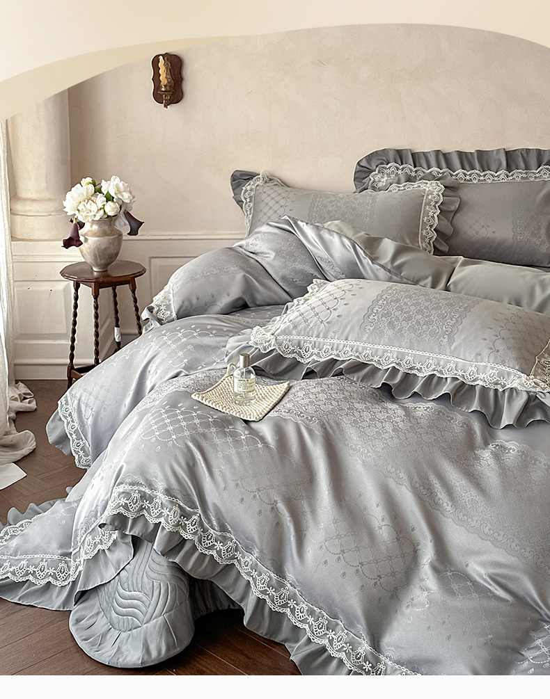 当前位置: 91家纺网 > 商品网购 > 床品套件 > 四件套 > 其它四件套 > 首尔家纺 2026新款花边蕾丝提花水洗真丝天丝四件套 浮生若梦-浅云灰
