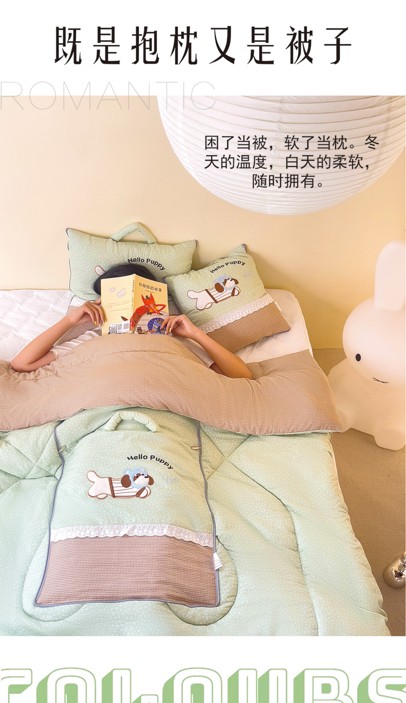 (总) 伊可爱抱枕被 2023新款蕾丝贴绣加卡通烫印多功能抱枕被,好梦熊-靛蓝色,好梦熊-豆沙粉,好梦熊-湖蓝色,好梦熊-墨蓝色,好梦熊-嫩黄色,好梦熊-浅灰色,好梦熊-水绿色