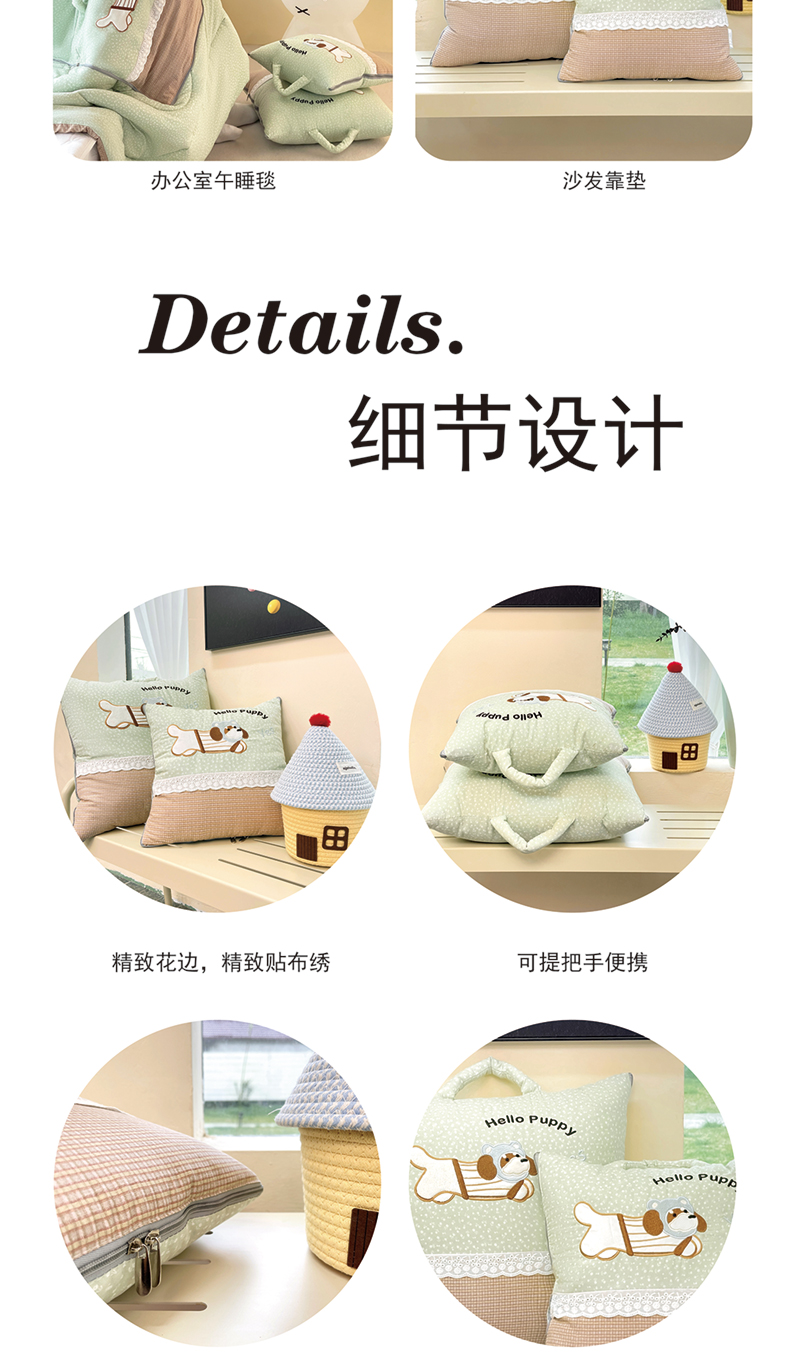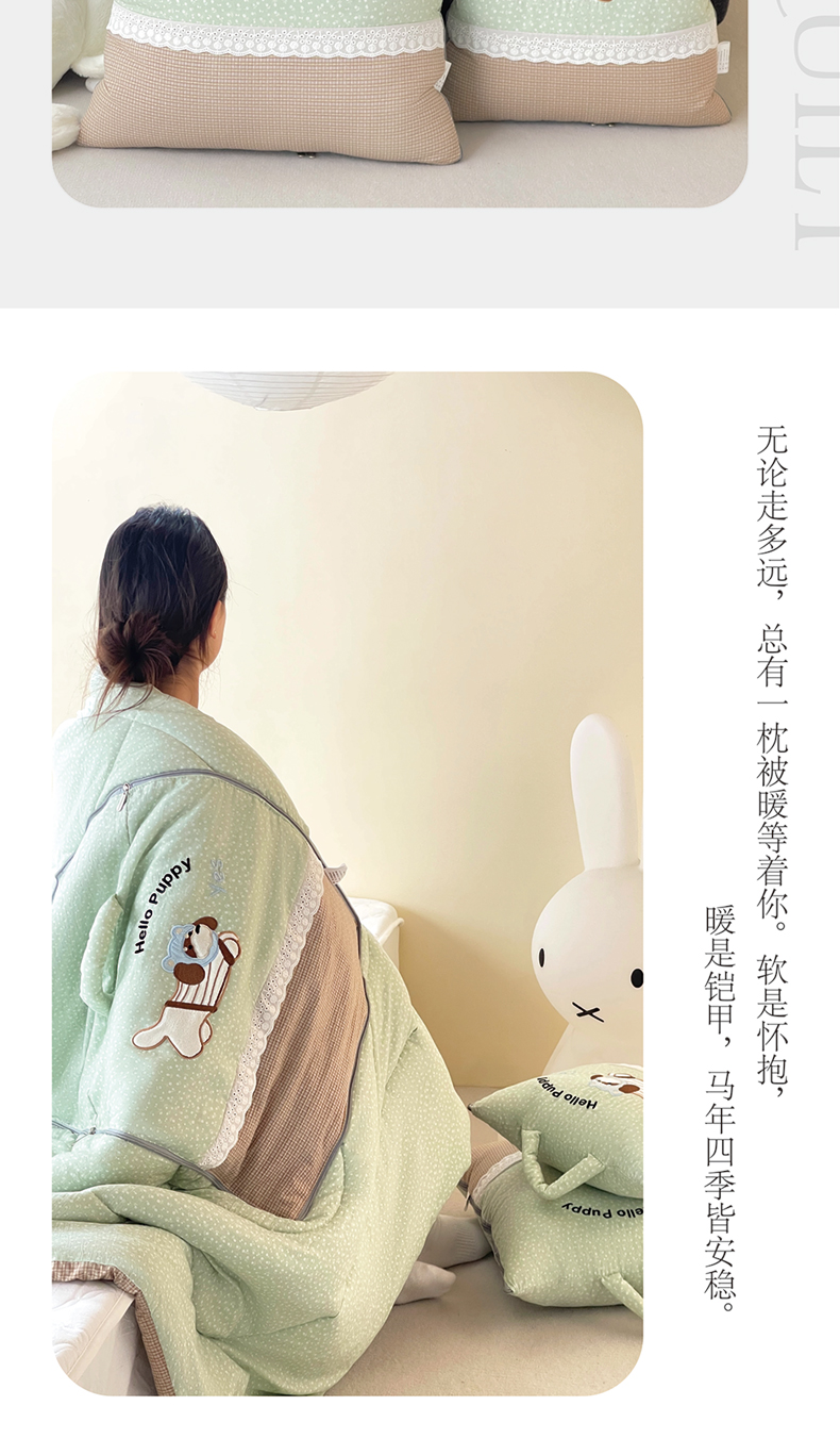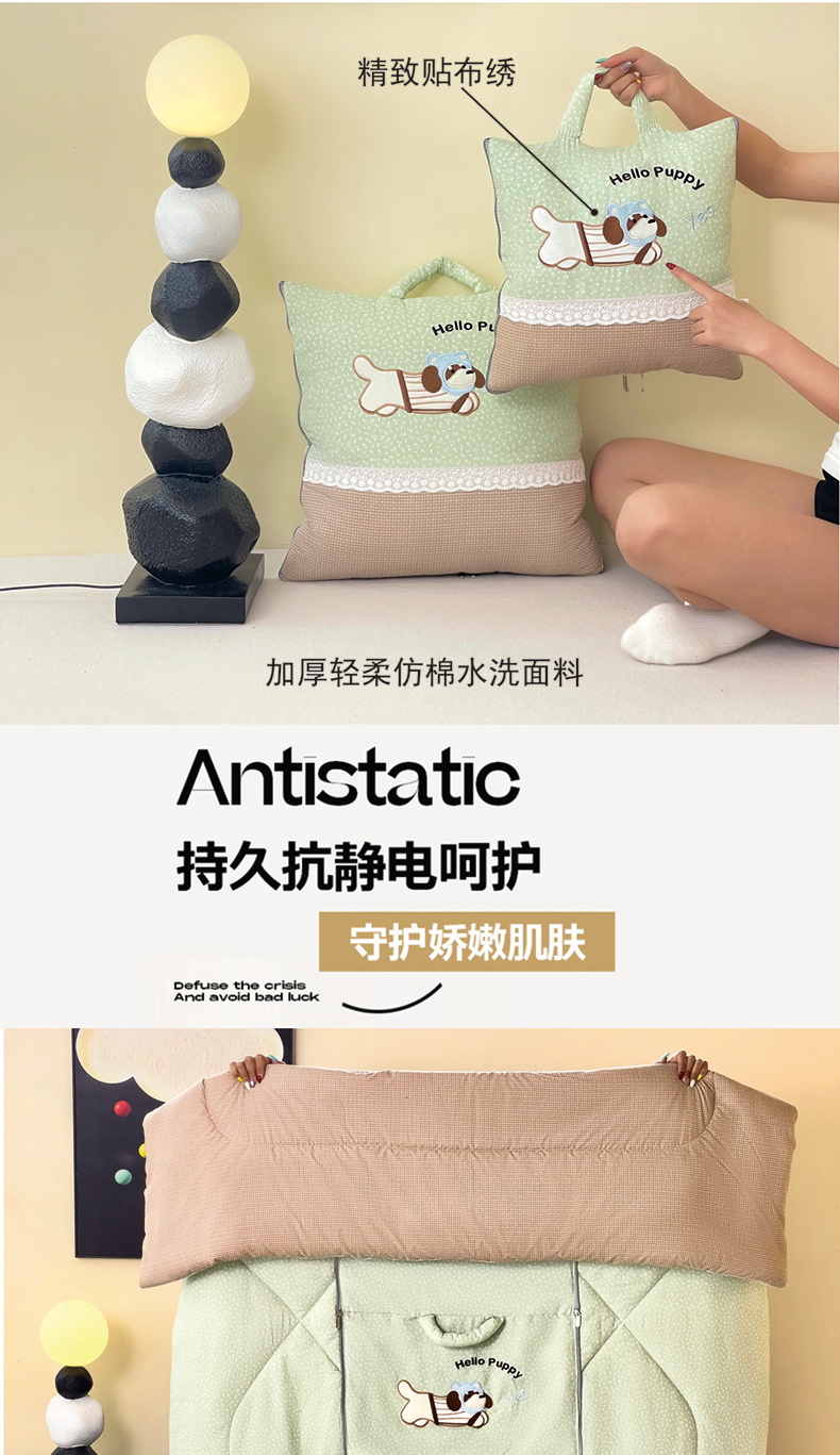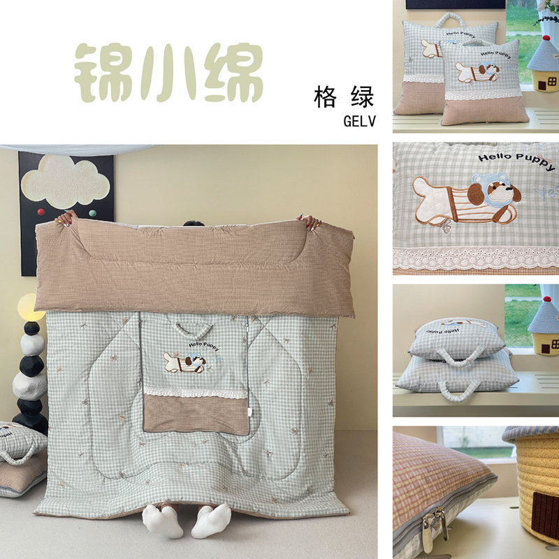 (总)伊可爱抱枕被 2026新款四季款锦小棉仿棉蕾丝贴布绣抱枕被,锦小绵-格蓝,锦小绵-格绿,锦小绵-果绿,锦小绵-卡其,锦小绵-蓝灰,锦小绵-浅蓝,锦小绵-紫粉