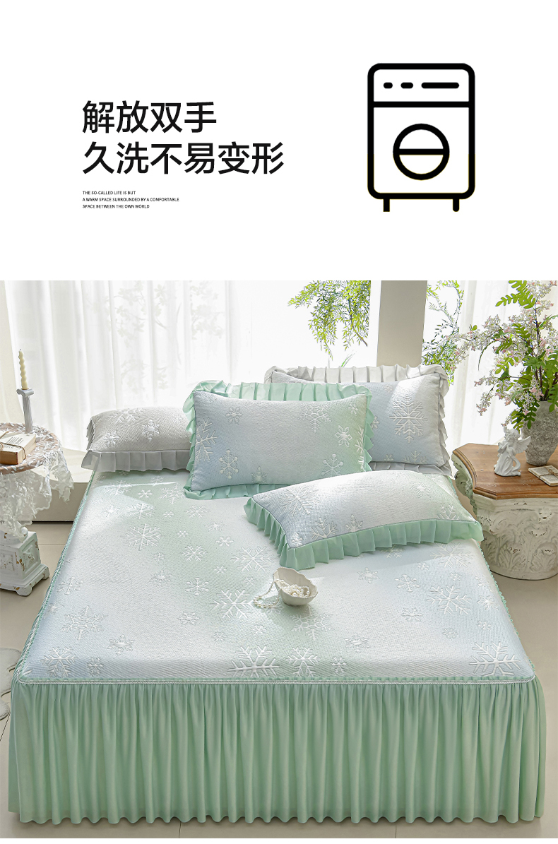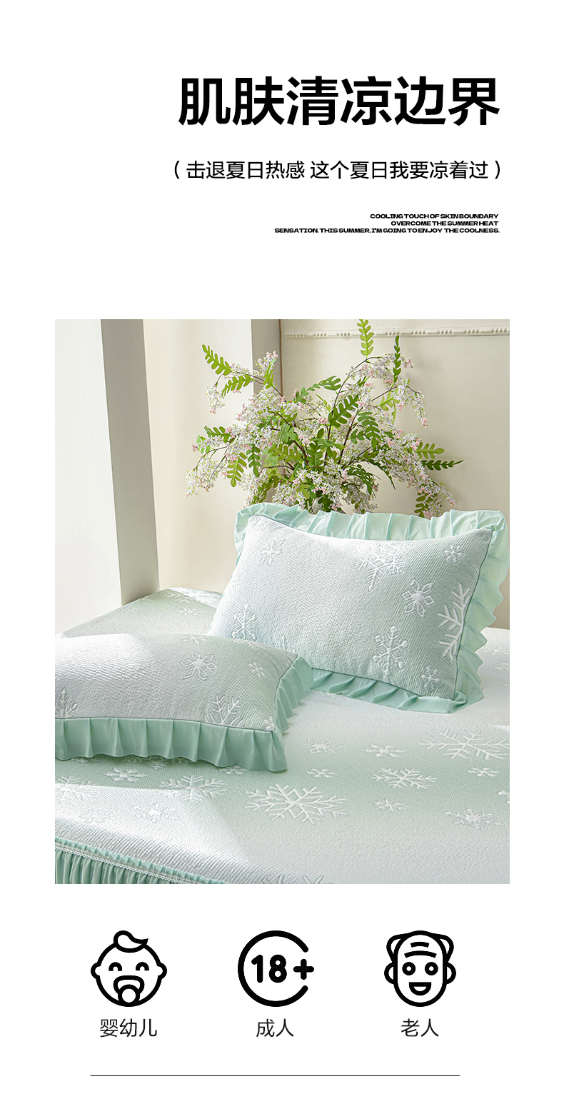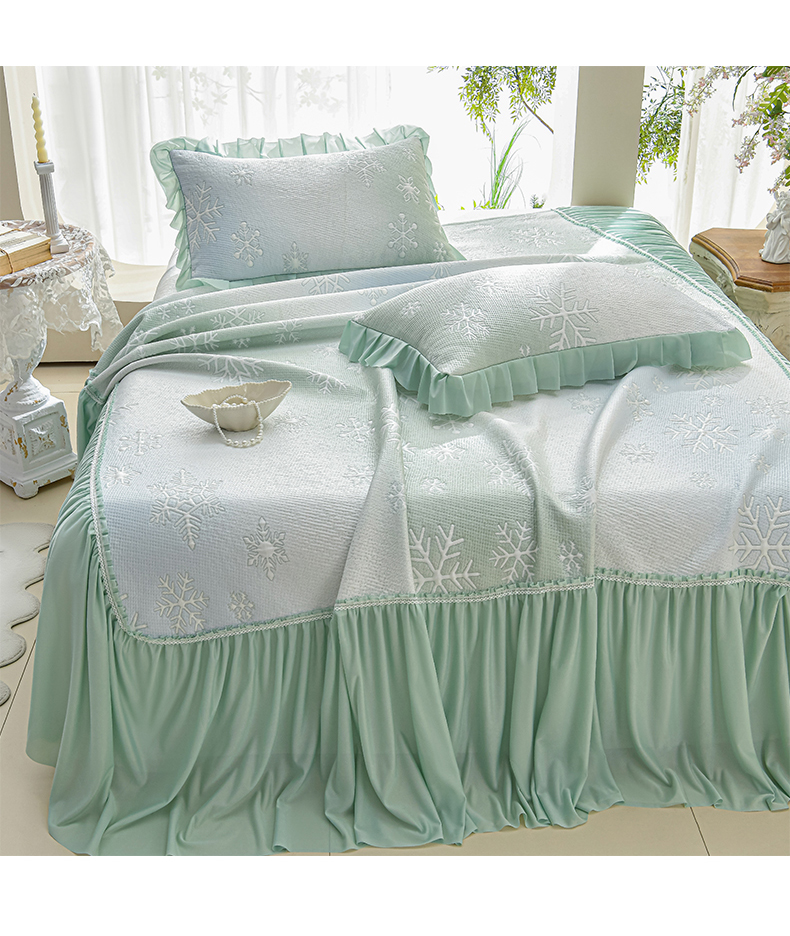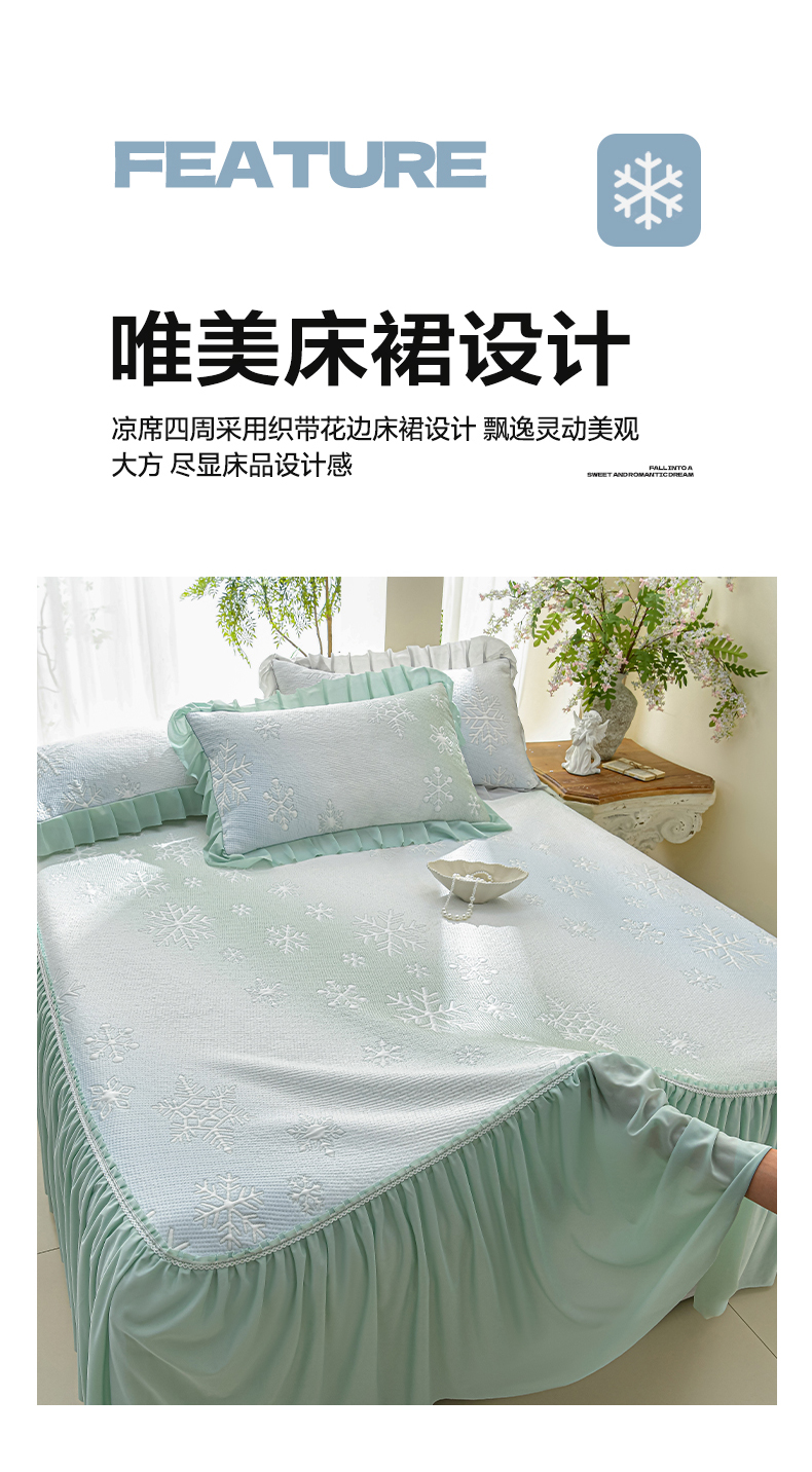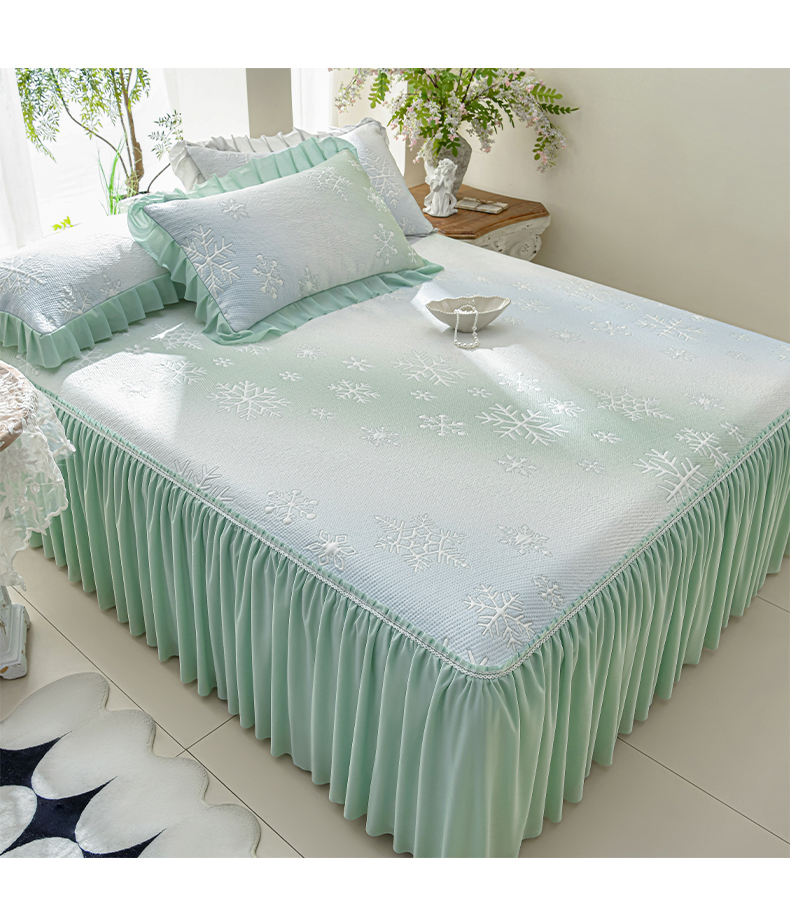 商品名称:绘萱家居 2026春夏新款530克PE100%提花冰凉豆豆床裙款凉席席子空调软席 渐变雪花-绿