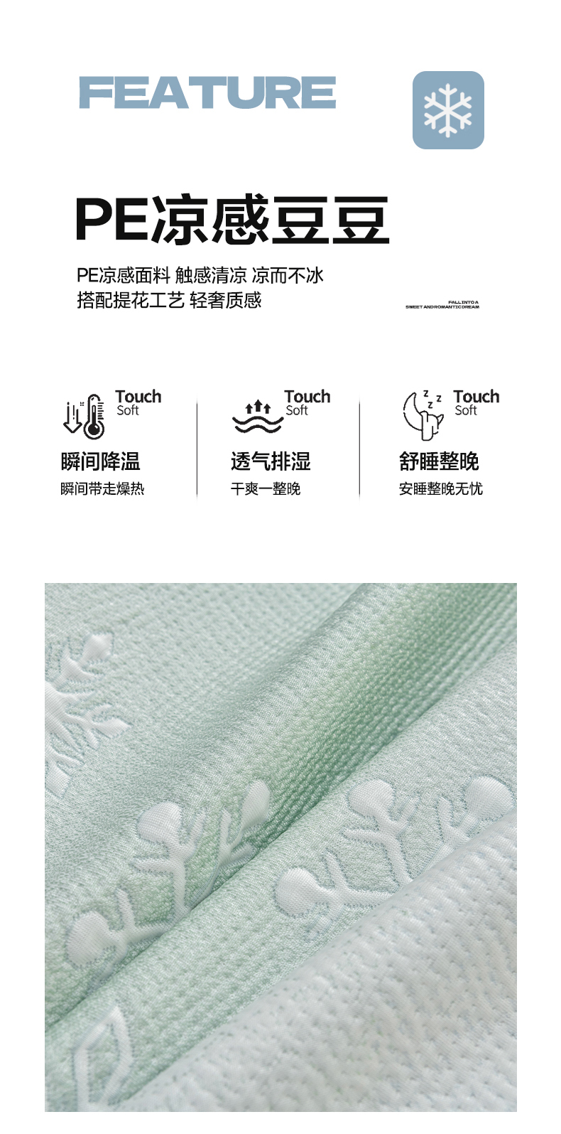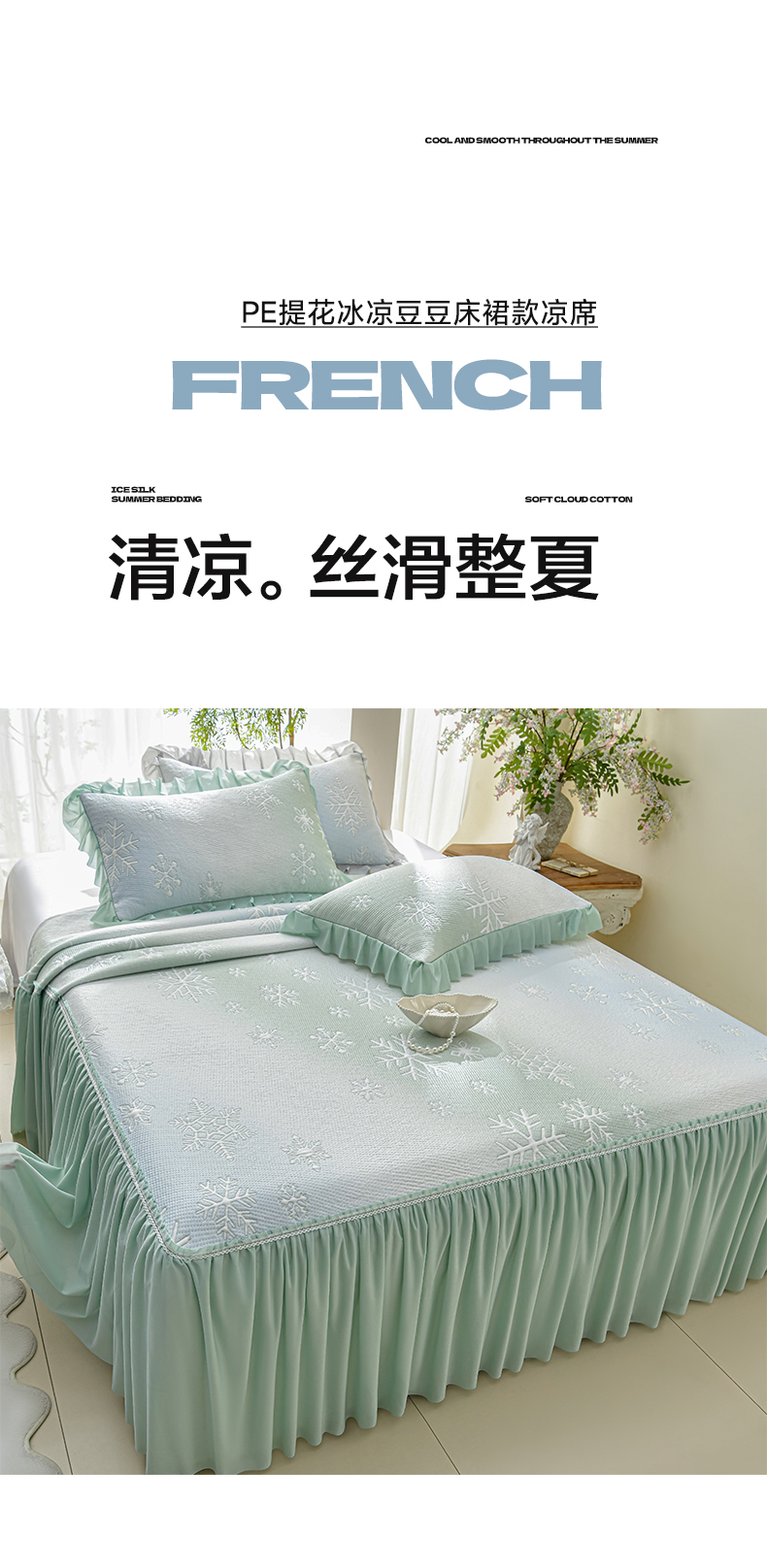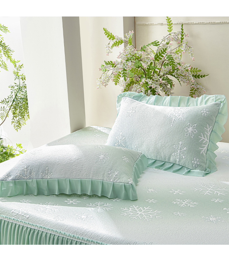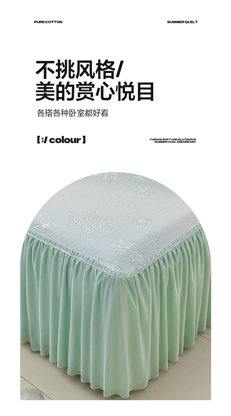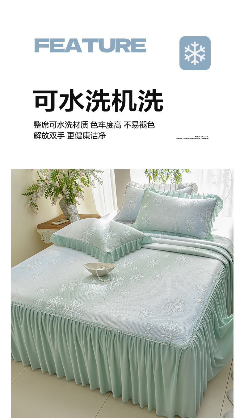 商品名称:绘萱家居 2026春夏新款530克PE100%提花冰凉豆豆床裙款凉席席子空调软席 渐变雪花-绿