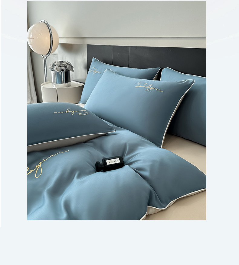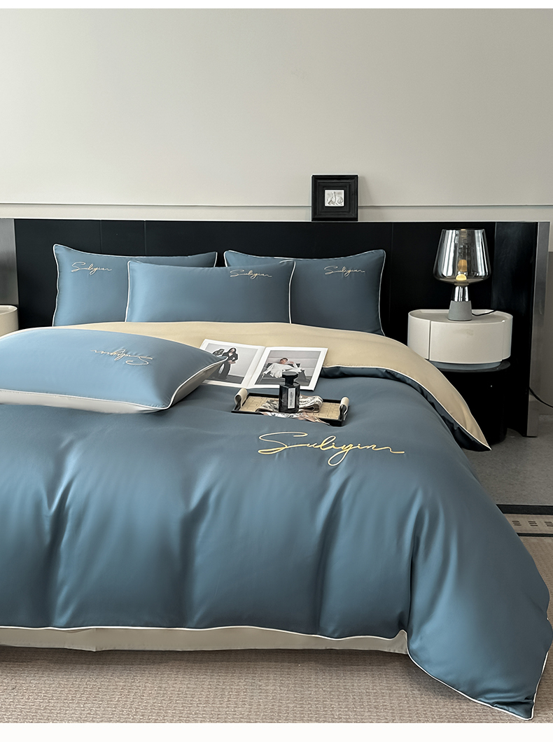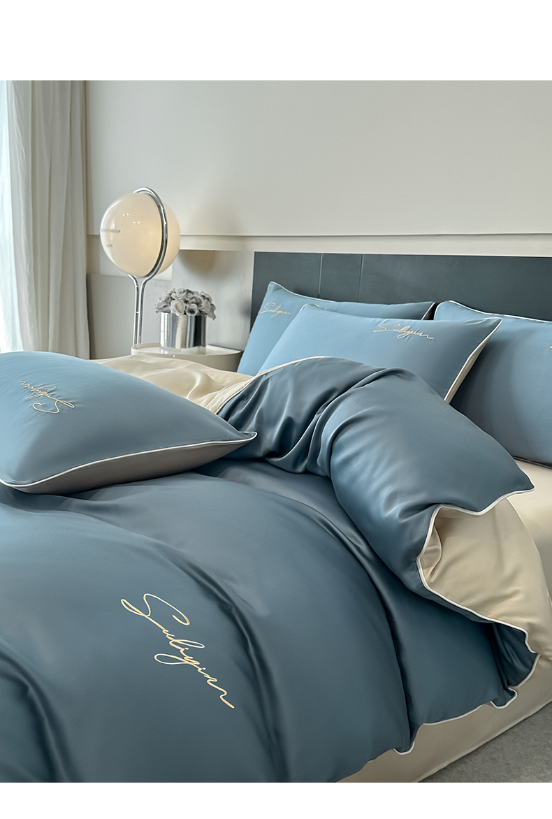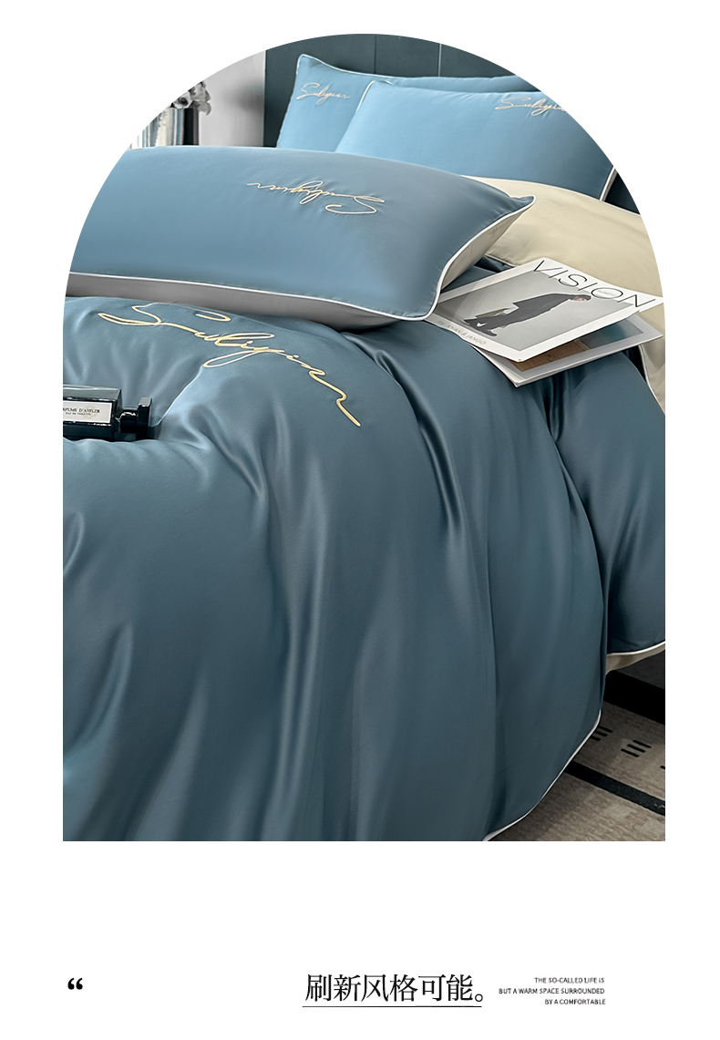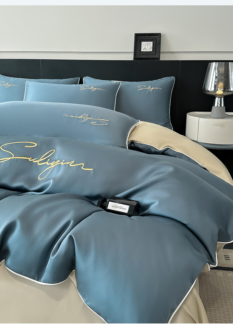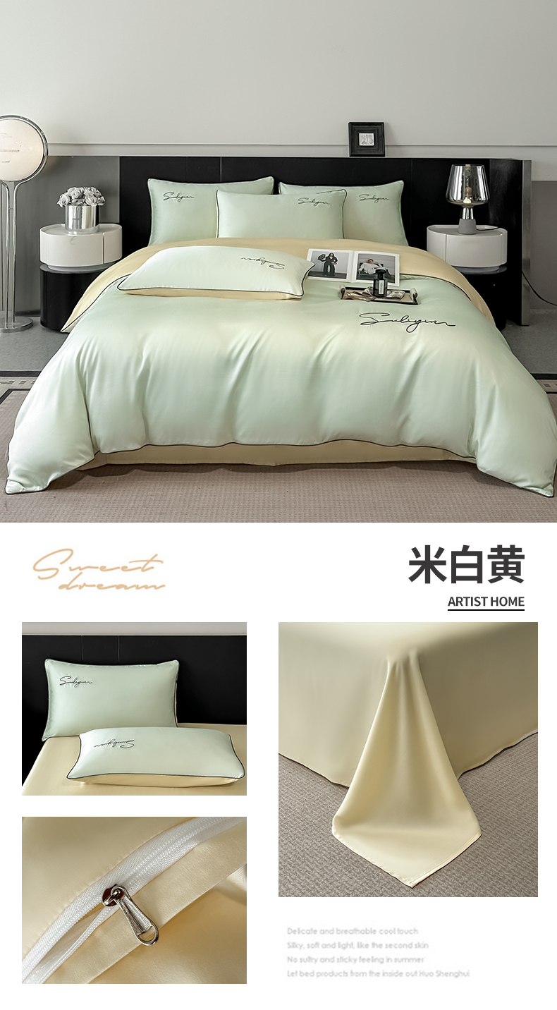 (总)美澳家纺 2026新款凉感水洗冰丝真丝刺绣双拼单被套四件套