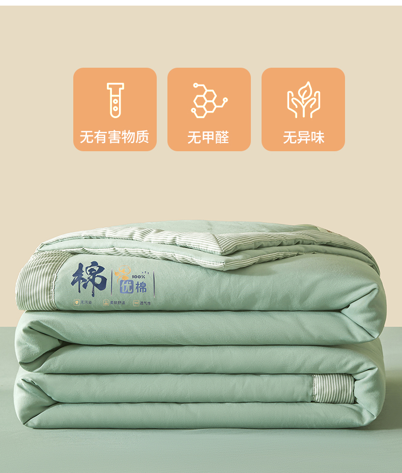 商品名称:星航家纺 2026新款水洗棉纯色棉花被夏被夏凉被空调被-素夏 素夏-抹茶绿