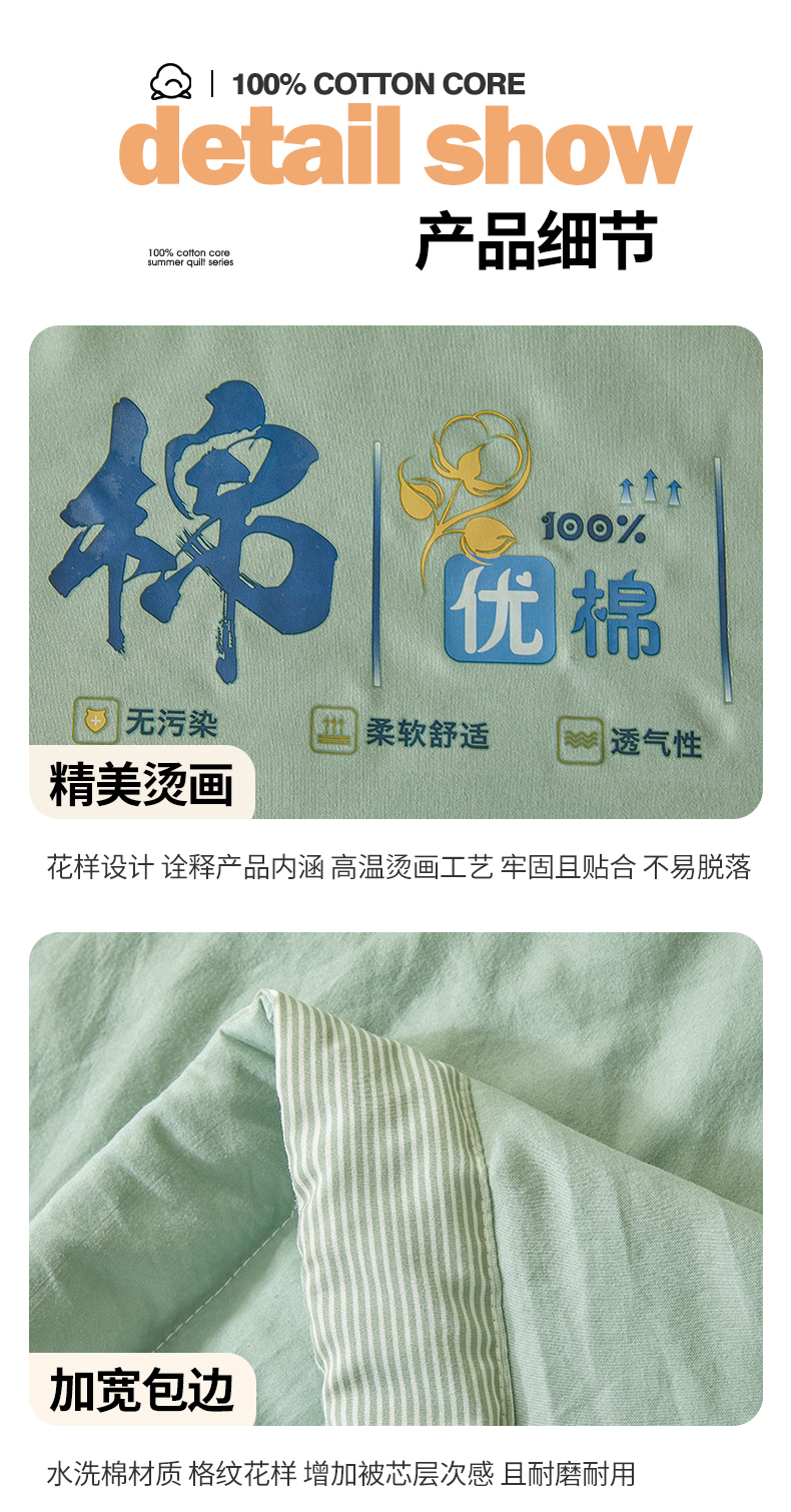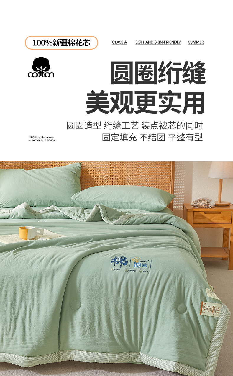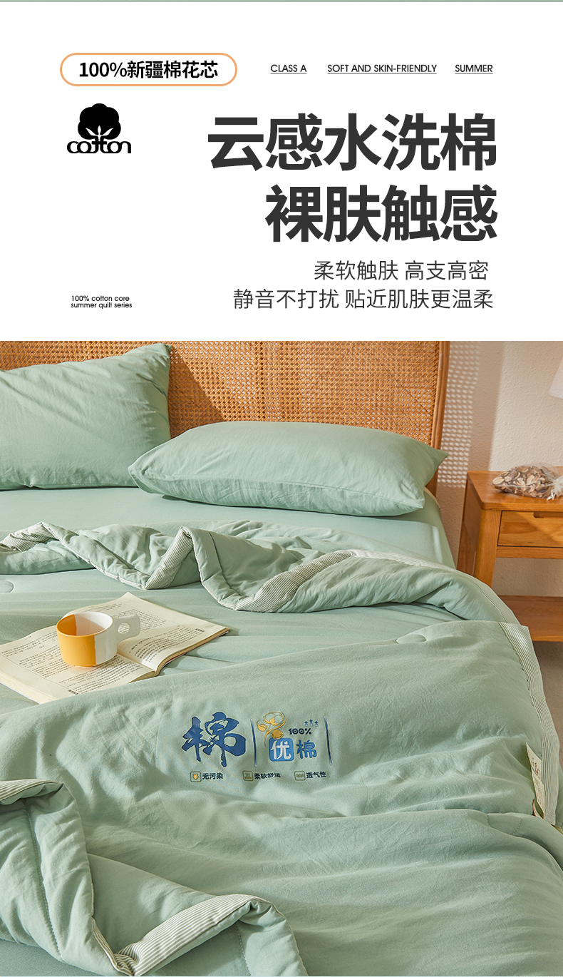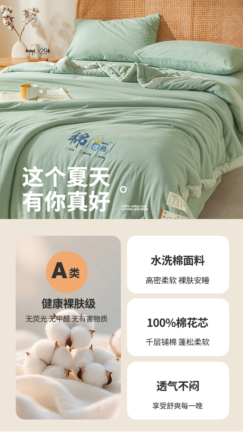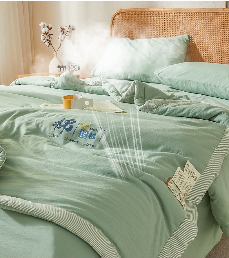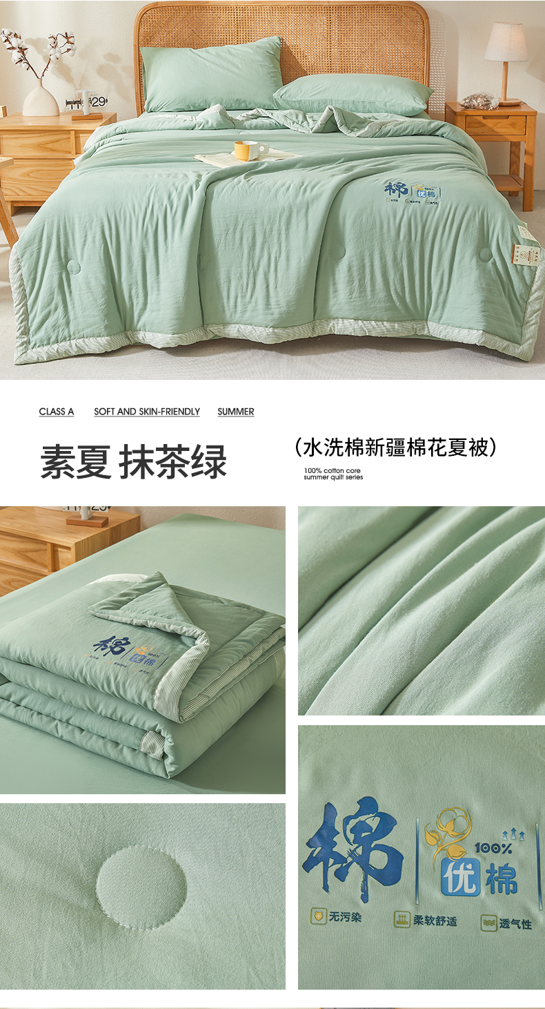 星航家纺 2026新款水洗棉纯色棉花被夏被夏凉被空调被-素夏 素夏-抹茶绿
