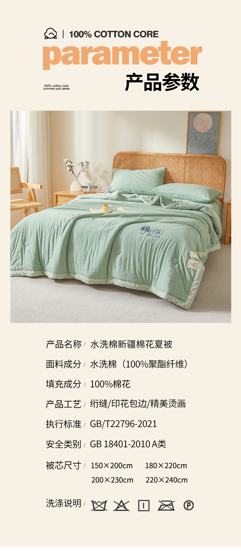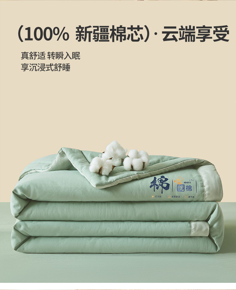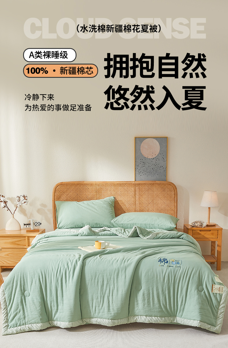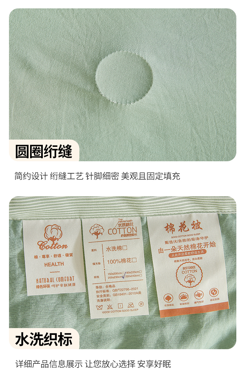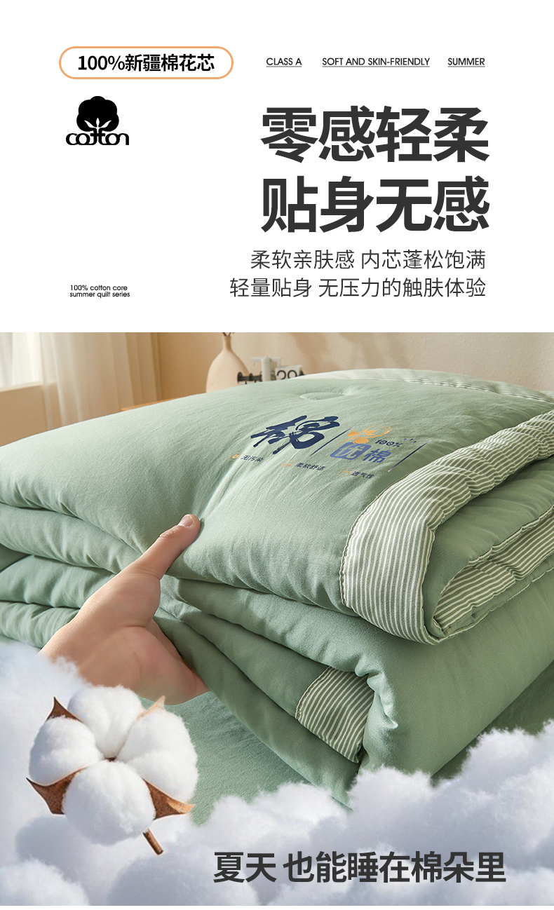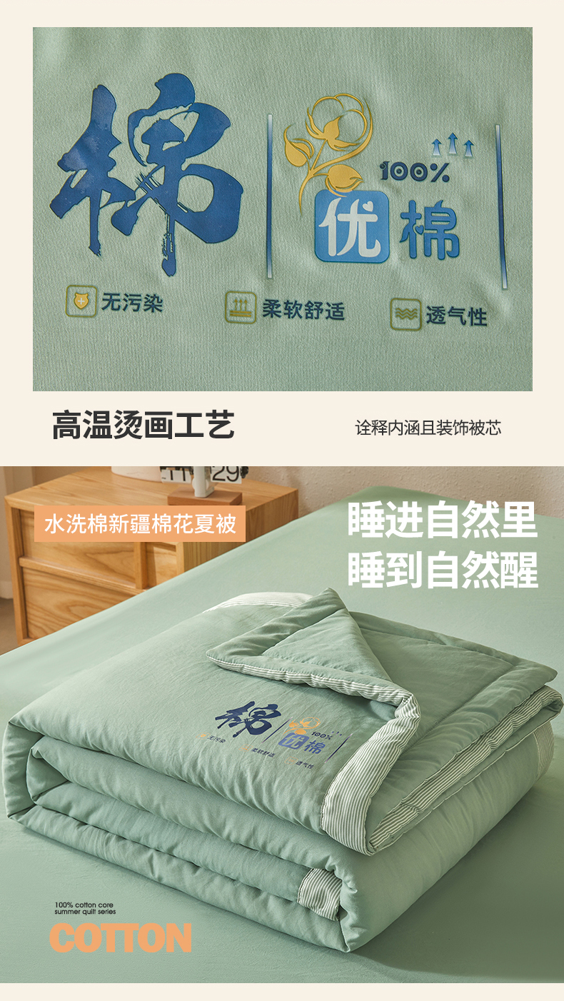 星航家纺 2026新款水洗棉纯色棉花被夏被夏凉被空调被-素夏 素夏-抹茶绿