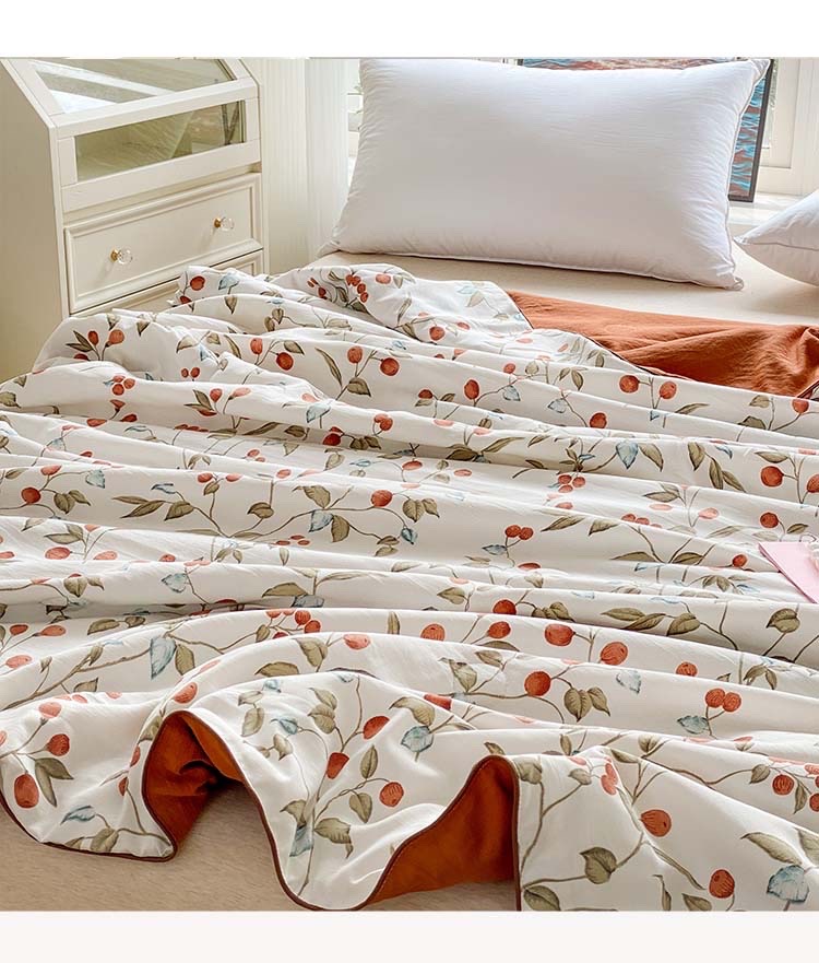 畅畅家纺 2026新款A类水洗棉麻双层纱夏被夏凉被空调被四件套 枫叶