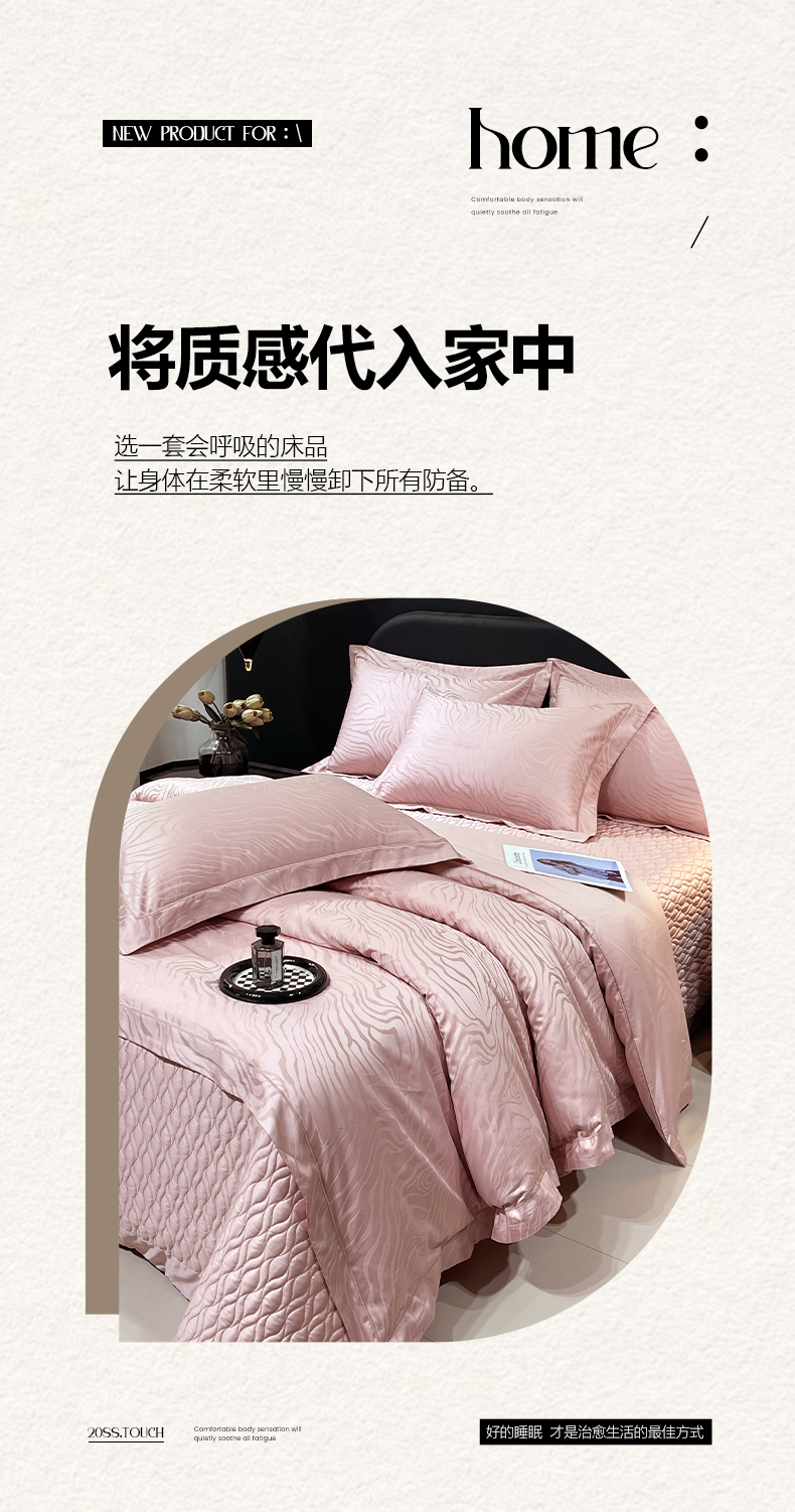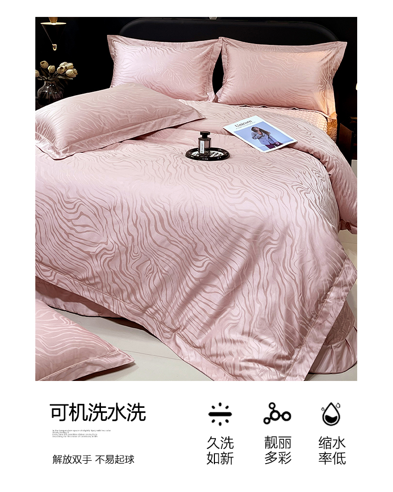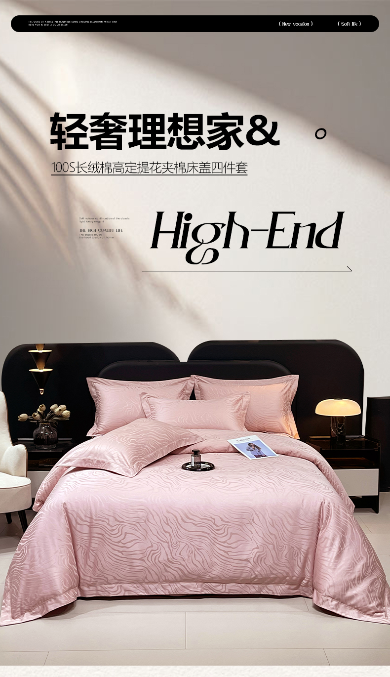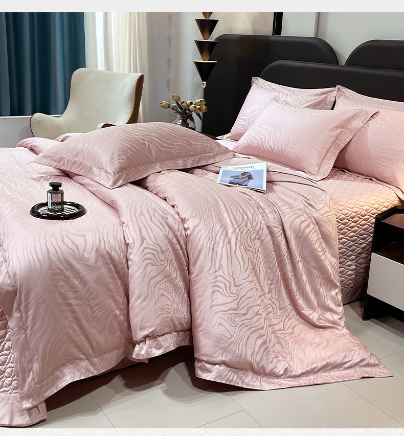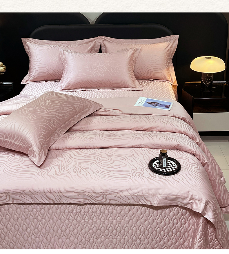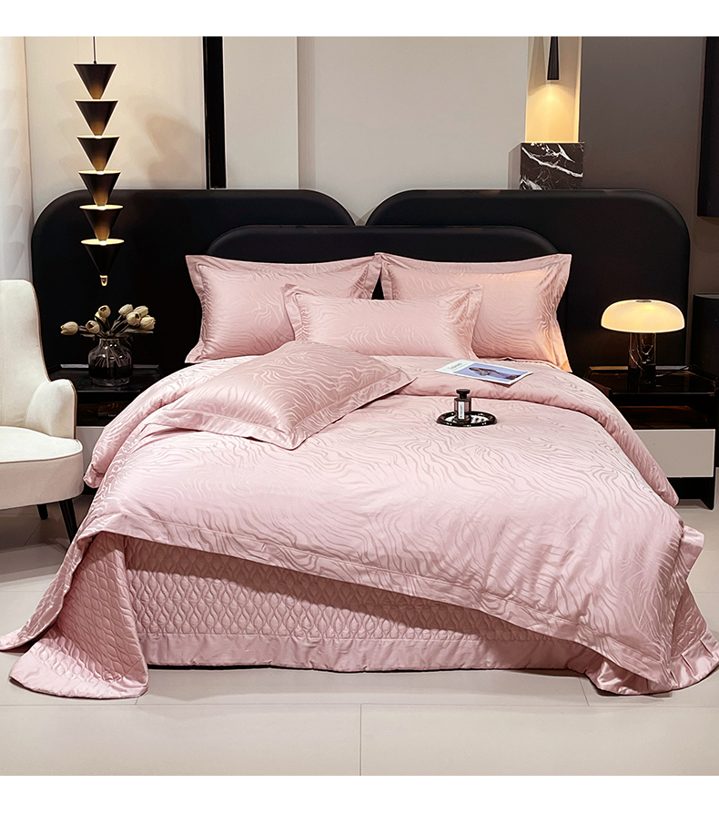 商品名称:畅畅家纺 2026新款高档100支长绒棉高定提花夹棉床盖纯色四件套 雅颂-粉